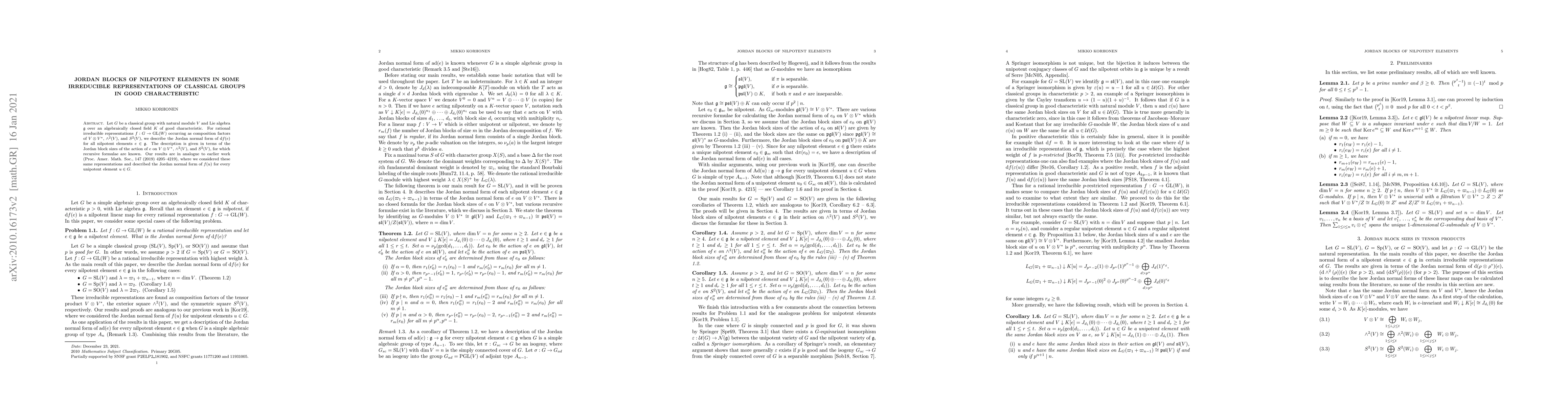 This research paper examines the Jordan normal form of nilpotent elements in the Lie algebra of classical groups over fields of good characteristic, focusing on rational irreducible representations occurring in $V \otimes V^*$, $\wedge^2(V)$, and $S^2(V)$. The paper provides a description of the Jordan block sizes for nilpotent elements, extending previous work on unipotent elements.