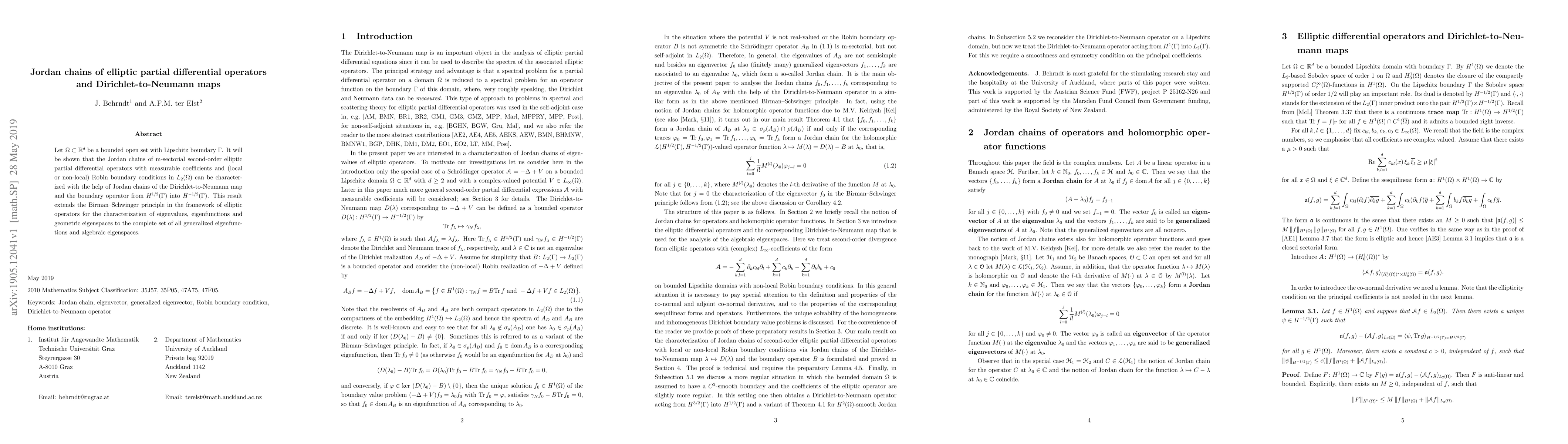 Let $\Omega \subset {\bf R}^d$ be a bounded open set with Lipschitz boundary $\Gamma$. It will be shown that the Jordan chains of m-sectorial second-order elliptic partial differential operators with measurable coefficients and (local or non-local) Robin boundary conditions in $L_2(\Omega)$ can be characterized with the help of Jordan chains of the Dirichlet-to-Neumann map and the boundary operator from $H^{1/2}(\Gamma)$ into $H^{-1/2}(\Gamma)$. This result extends the Birman--Schwinger principle in the framework of elliptic operators for the characterization of eigenvalues, eigenfunctions and geometric eigenspaces to the complete set of all generalized eigenfunctions and algebraic eigenspaces.