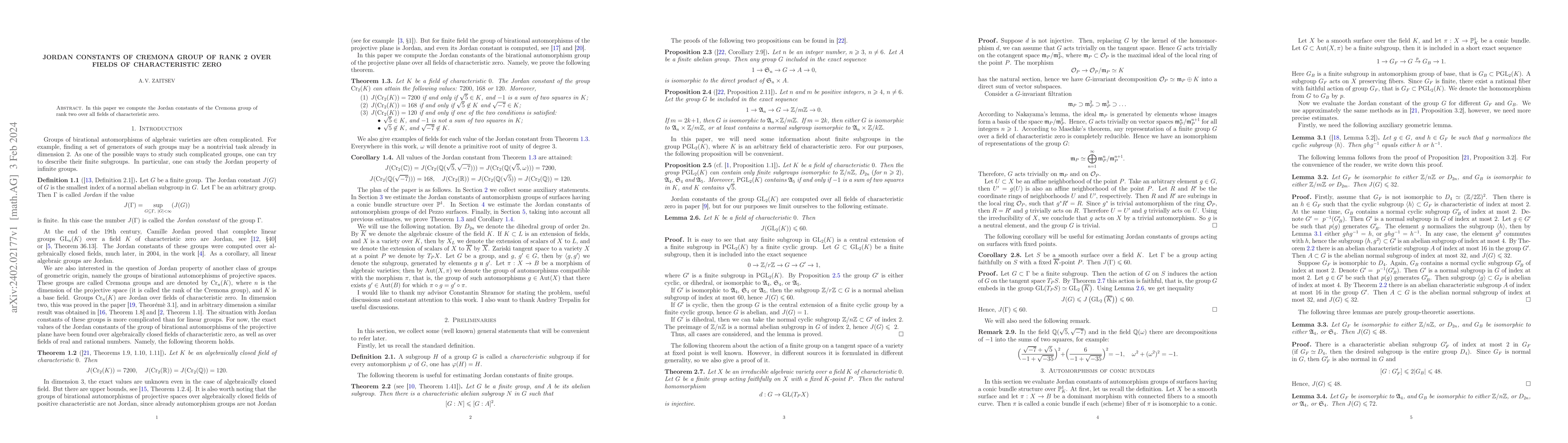 Summary: This paper calculates the Jordan constants for the Cremona group of rank two across all fields with characteristic zero. The results provide insights into the group's algebraic structure and its complexity.