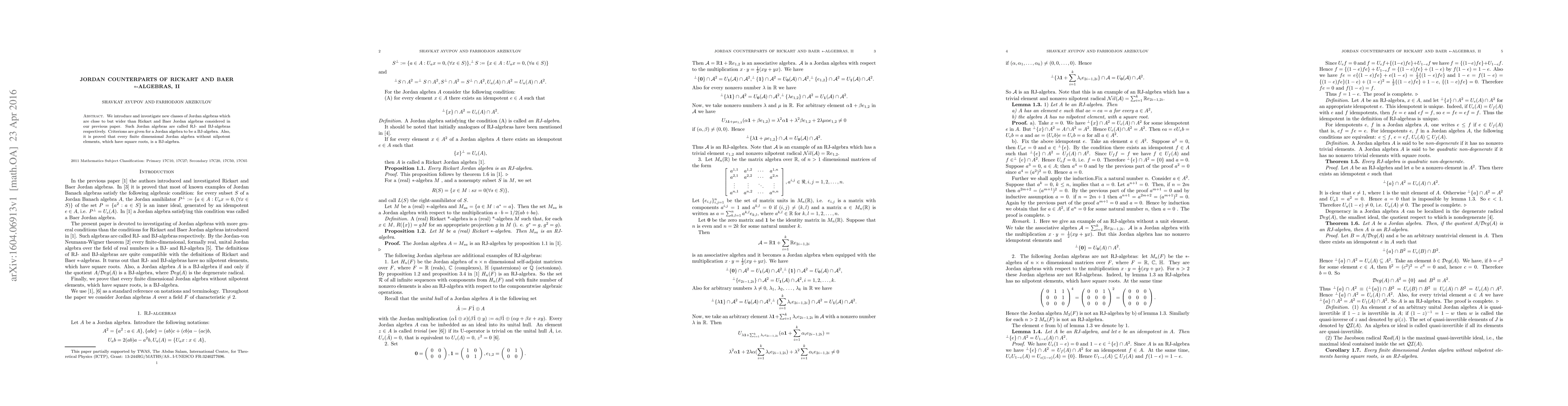 We introduce and investigate new classes of Jordan algebras which are close to but wider than Rickart and Baer Jordan algebras considered in our previous paper. Such Jordan algebras are called RJ- and BJ-algebras respectively. Criterions are given for a Jordan algebra to be a BJ-algebra. Also, it is proved that every finite dimensional Jordan algebra without nilpotent elements, which have square roots, is a BJ-algebra.