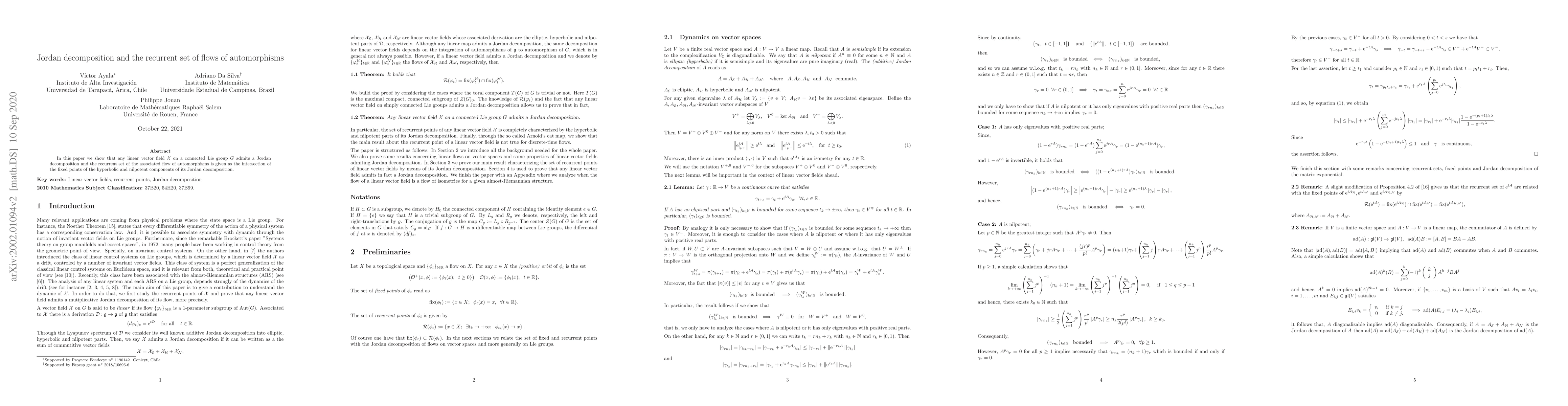 This paper demonstrates that any linear vector field on a connected Lie group can be decomposed into Jordan components, and identifies the recurrent set of the corresponding flow of automorphisms as the intersection of fixed points of the hyperbolic and nilpotent parts of this decomposition.