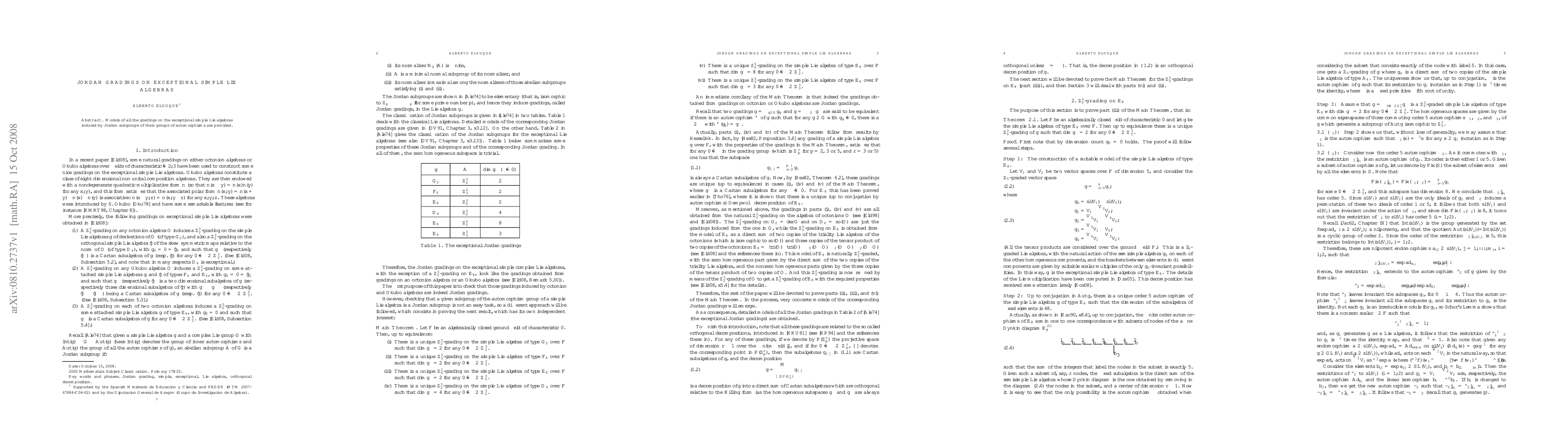 Models of all the gradings on the exceptional simple Lie algebras induced by Jordan subgroups of their groups of automorphisms are provided.