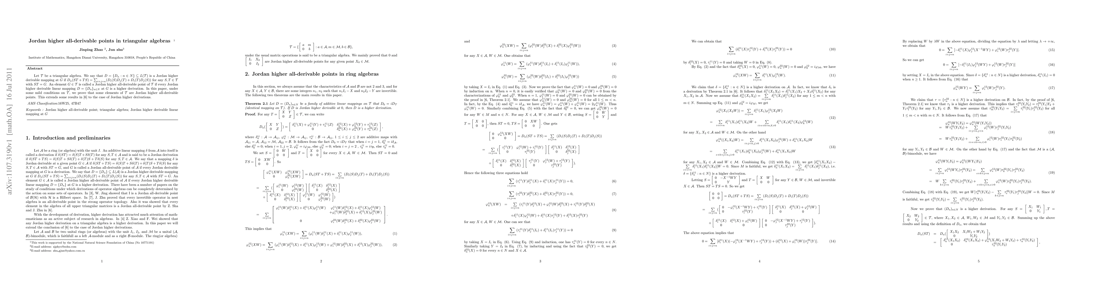Let ${\mathcal{T}}$ be a triangular algebra. We say that $D=\{D_{n}: n\in N\}\subseteq L({\mathcal{T}})$ is a Jordan higher derivable mapping at $G$ if $D_{n}(ST+TS)=\sum_{i+j=n}(D_{i}(S)D_{j}(T)+D_{i}(T)D_{j}(S))$ for any $S,T\in {\mathcal{T}}$ with $ST=G$. An element $G\in {\mathcal{T}}$ is called a Jordan higher all-derivable point of ${\mathcal{T}}$ if every Jordan higher derivable linear mapping $D=\{D_{n}\}_{n\in N}$ at $G$ is a higher derivation. In this paper, under some mild conditions on ${\mathcal{T}}$, we prove that some elements of ${\mathcal{T}}$ are Jordan higher all-derivable points. This extends some results in [6] to the case of Jordan higher derivations.