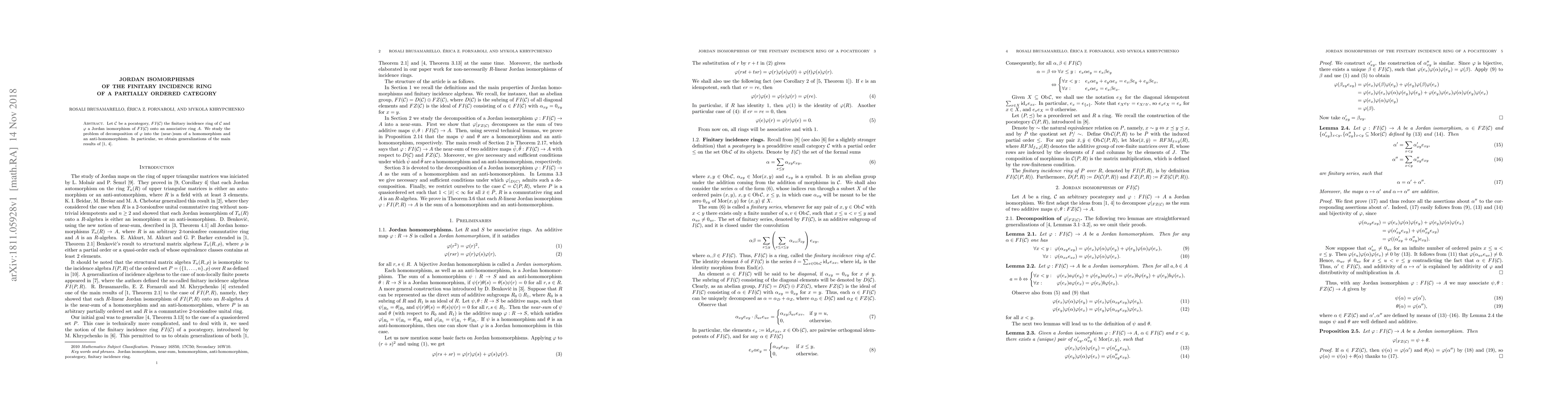 This paper explores the Jordan isomorphisms of the finitary incidence ring $FI(\mathcal{C})$ of a partially ordered category $\mathcal{C}$, focusing on decomposing such isomorphisms into the sum of a homomorphism and an anti-homomorphism. The study aims to understand the structural properties of these decompositions.