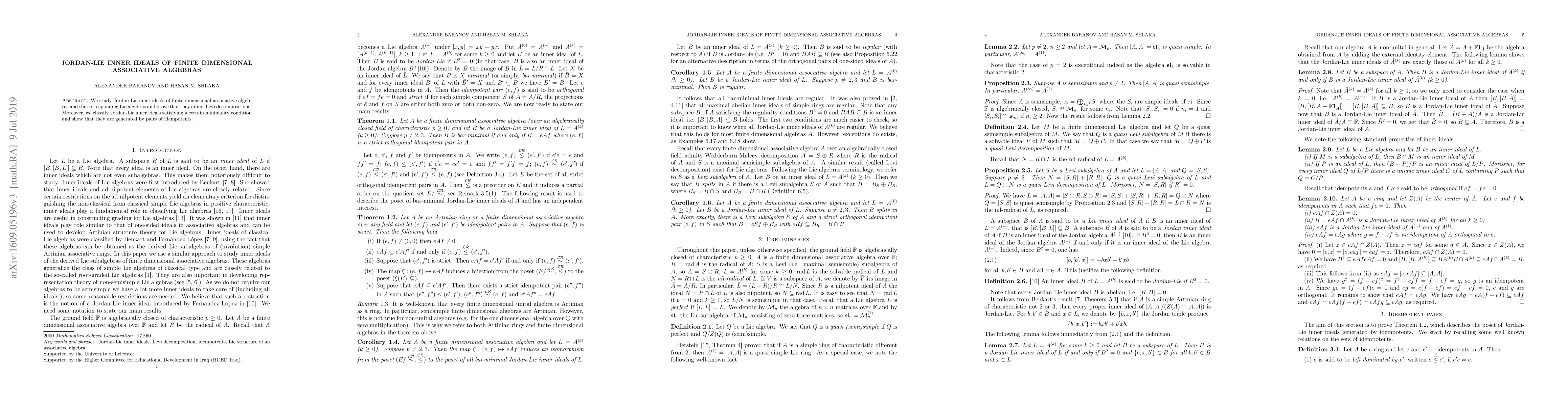 This research investigates Jordan-Lie inner ideals within finite-dimensional associative algebras, proving their Levi decompositions. It classifies minimal Jordan-Lie inner ideals, demonstrating they are generated by pairs of idempotents.