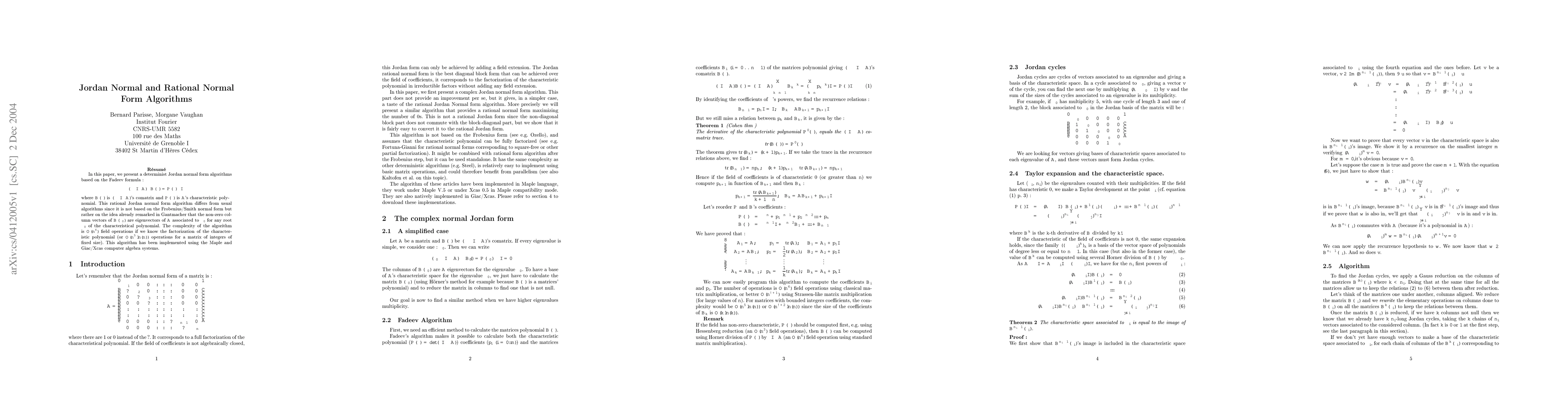 Researchers develop a new Jordan normal form algorithm that leverages Gantmacher's idea about non-zero column vectors of comatrices being eigenvectors, offering improved complexity and implementation.