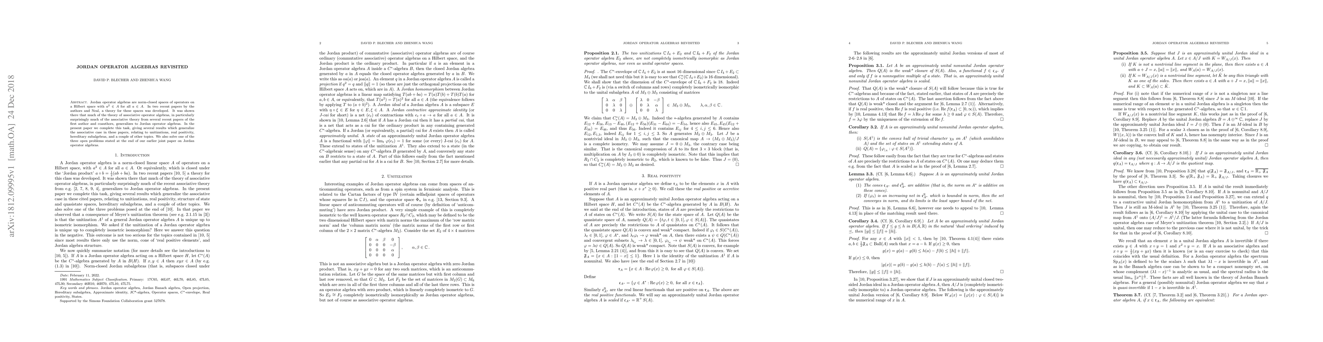 Jordan operator algebras are norm-closed spaces of operators on a Hilbert space with a^2 in A for all a in A. In two recent papers by the authors and Neal, a theory for these spaces was developed. It was shown there that much of the theory of associative operator algebras, in particularly surprisingly much of the associative theory from several recent papers of the first author and coauthors, generalizes to Jordan operator algebras. In the present paper we complete this task, giving several results which generalize the associative case in these papers, relating to unitizations, real positivity, hereditary subalgebras, and a couple of other topics. We also solve one of the three open problems stated at the end of our earlier joint paper on Jordan operator algebras.