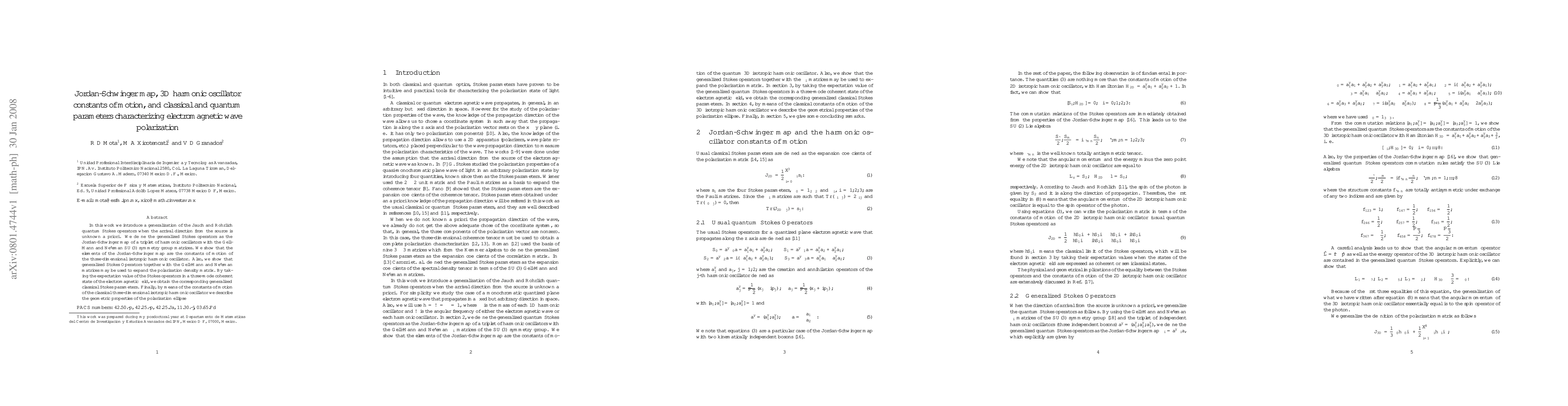 This paper generalizes the quantum Stokes operators using the Jordan-Schwinger map and SU(3) symmetry, demonstrating that these operators serve as constants of motion for a 3D harmonic oscillator and are applicable to electromagnetic wave polarization characterization. It also derives classical Stokes parameters from the expectation values of these operators in coherent states.