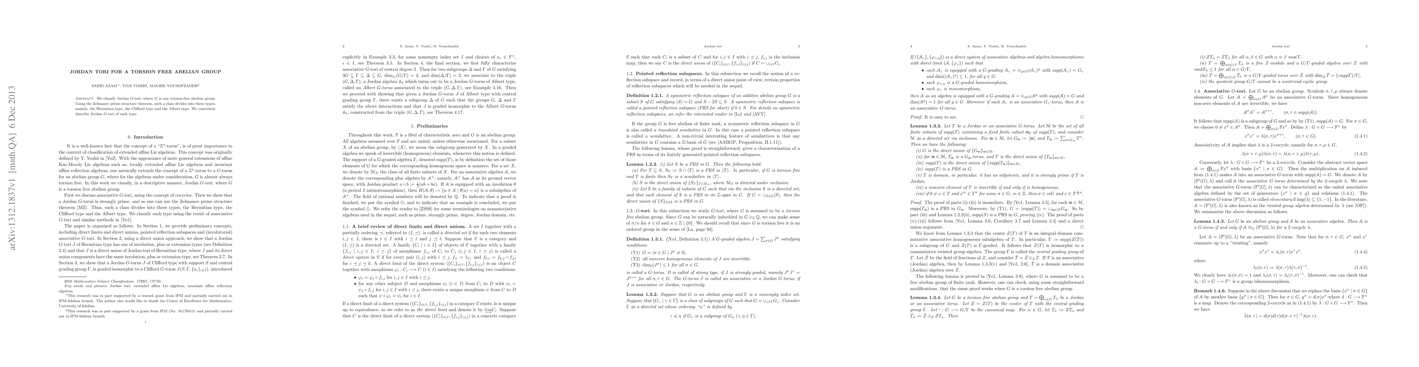 Researchers classify Jordan tori for torsion-free abelian groups into three types: Hermitian, Clifford, and Albert, providing a concrete description of each type.