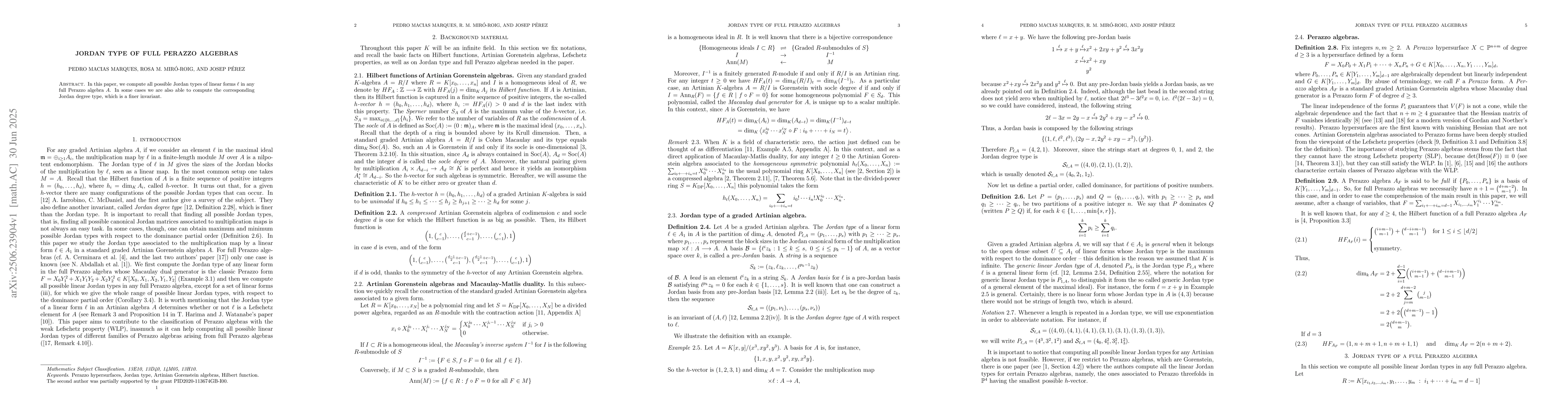 In this paper, we compute all possible Jordan types of linear forms $\ell$ in any full Perazzo algebra $A$. In some cases we are also able to compute the corresponding Jordan degree type, which is a finer invariant.
