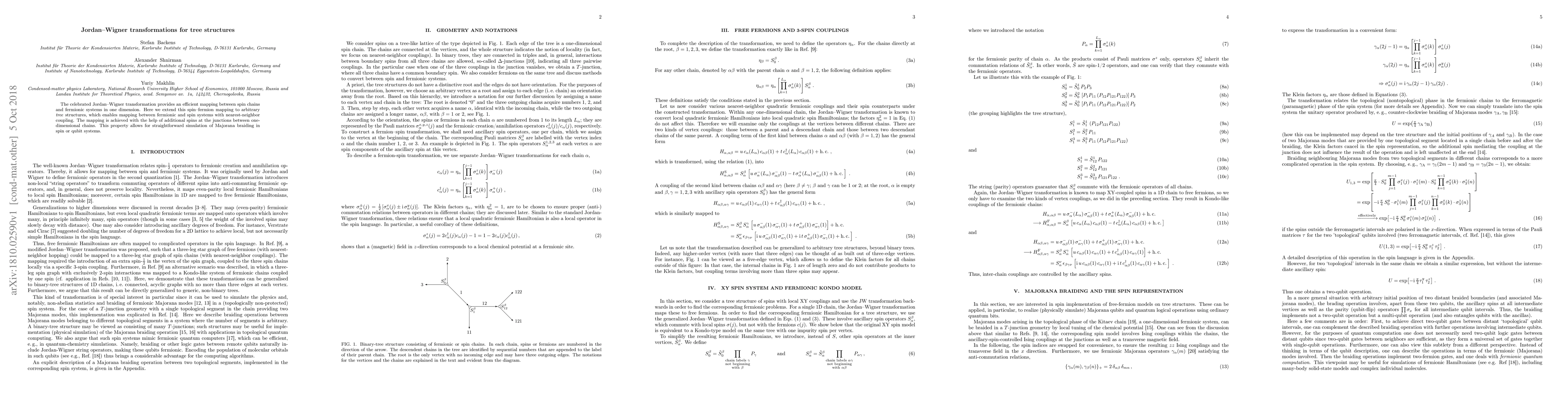 The paper extends the Jordan-Wigner transformation to tree structures, enabling efficient mapping between fermionic and spin systems with nearest-neighbor coupling, and facilitating the simulation of Majorana braiding.