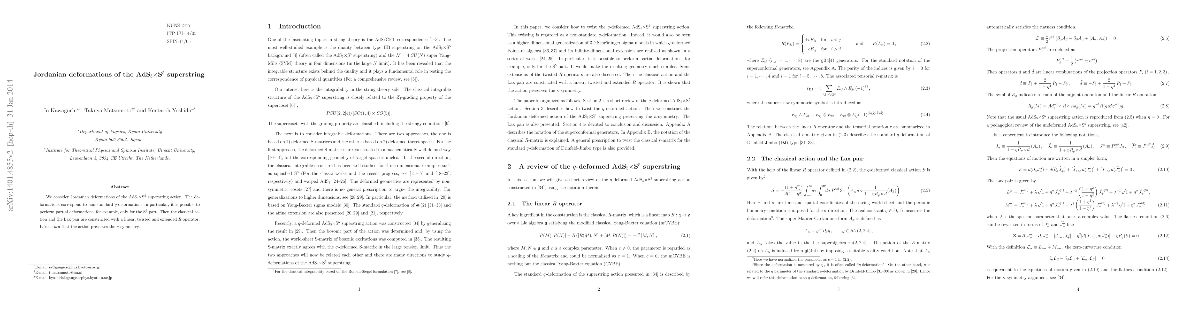 Summary: This paper explores Jordanian deformations of the AdS_5xS^5 superstring, introducing non-standard q-deformations that allow for selective deformation of the S^5 part. The study constructs a classical action and Lax pair with a modified R operator, demonstrating preservation of kappa-symmetry.