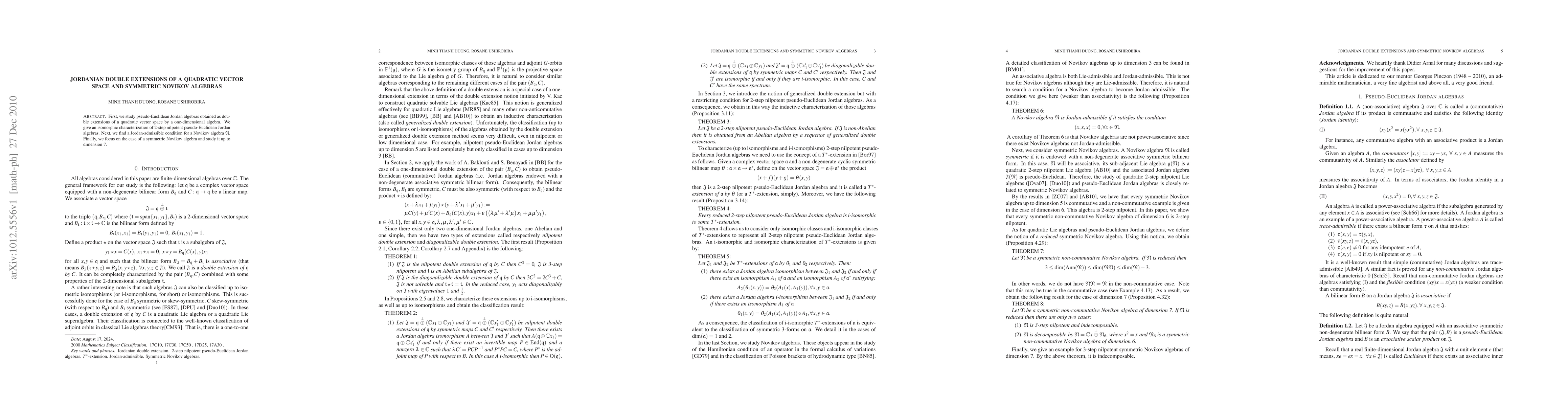First, we study pseudo-Euclidean Jordan algebras obtained as double extensions of a quadratic vector space by a one-dimensional algebra. We give an isomorphic characterization of 2-step nilpotent pseudo-Euclidean Jordan algebras. Next, we find a Jordan-admissible condition for a Novikov algebra $\N$. Finally, we focus on the case of a symmetric Novikov algebra and study it up to dimension 7.