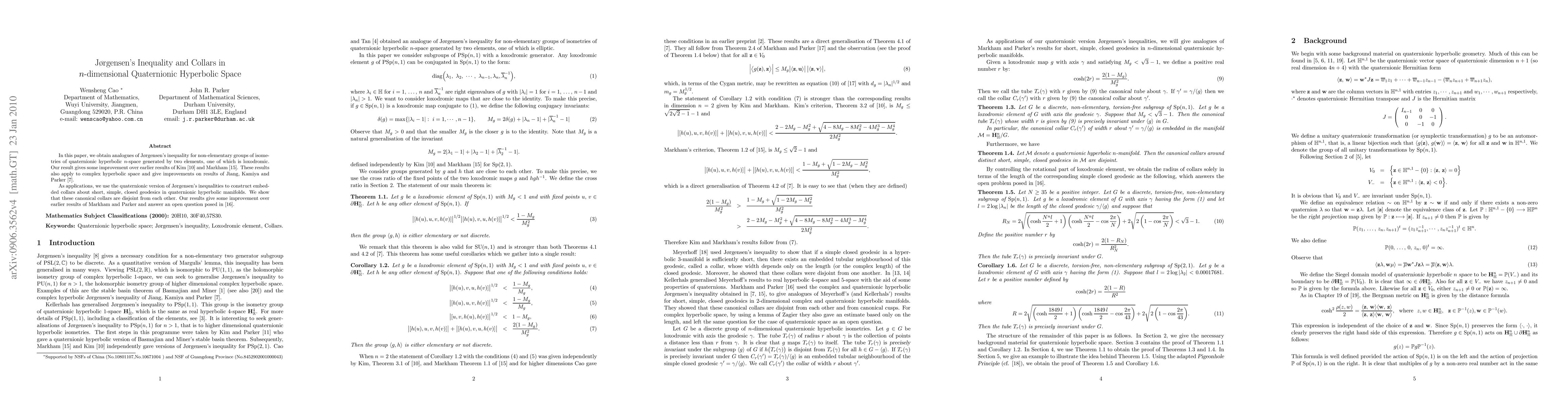 This paper establishes improved analogues of Jorgensen's inequalities for non-elementary groups in quaternionic hyperbolic space, extending results to complex hyperbolic space. It also constructs disjoint embedded collars around short, simple, closed geodesics in quaternionic hyperbolic manifolds, improving upon previous findings.