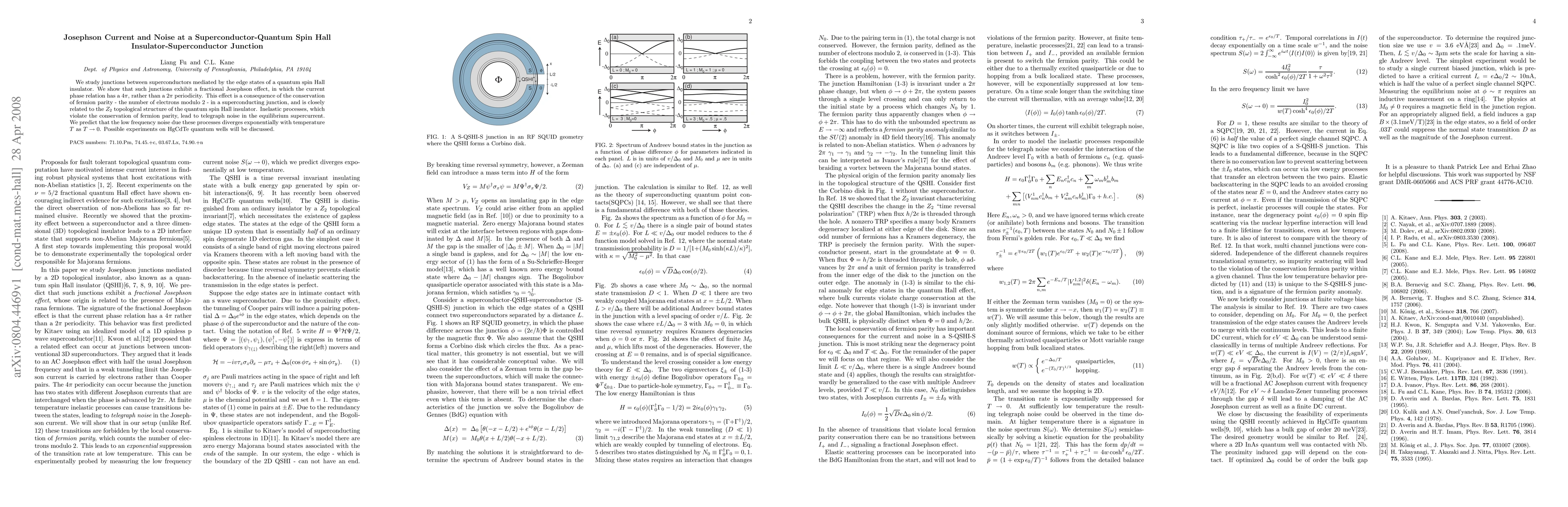 The paper investigates superconductor-quantum spin Hall insulator-superconductor junctions, demonstrating a 4π-periodic fractional Josephson effect due to fermion parity conservation, and predicting exponential divergence of low-frequency noise at low temperatures. Experiments on HgCdTe quantum wells are proposed to verify these findings.