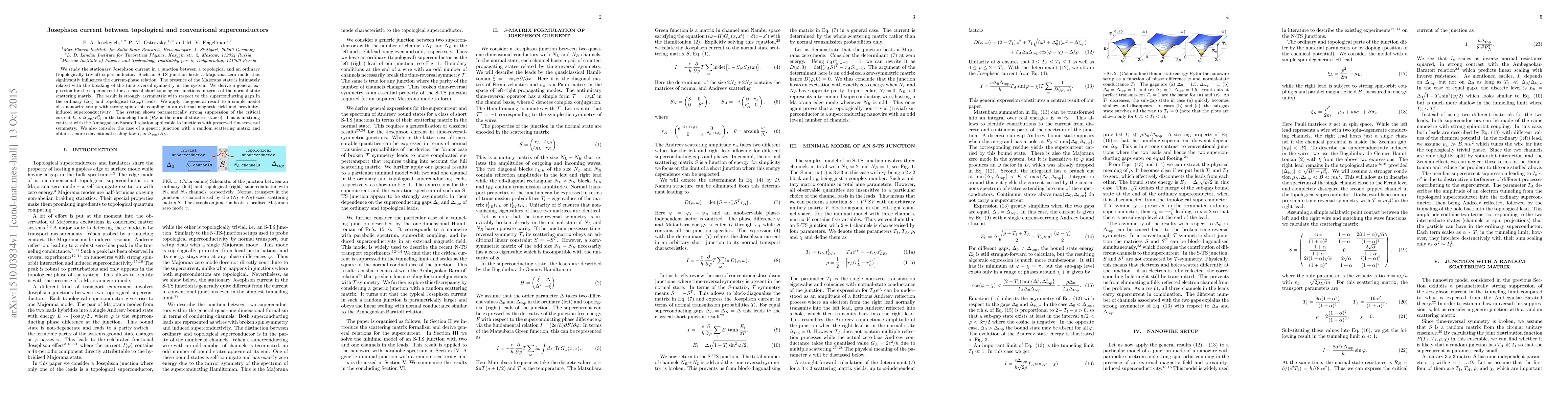 Researchers studied Josephson current in a junction between topological and conventional superconductors, finding strong asymmetry in the critical current with respect to the superconducting gaps in both leads.