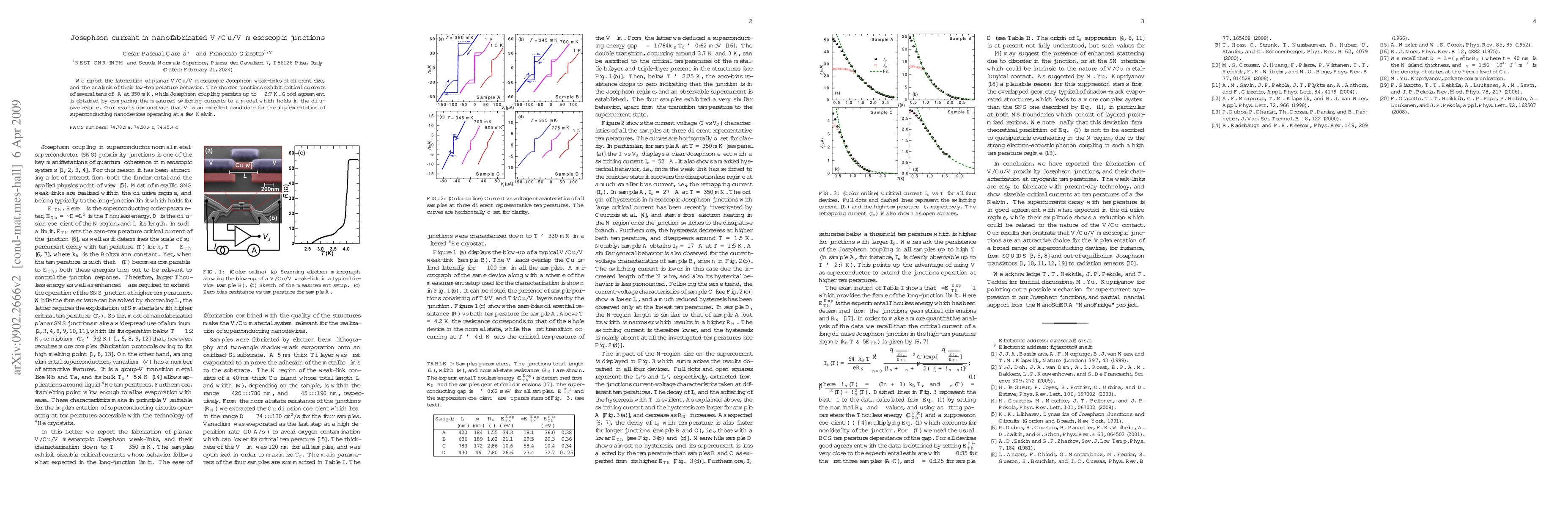 This paper details the fabrication of V/Cu/V mesoscopic Josephson junctions and their low-temperature behavior, showing critical currents in the microA range and persistent Josephson coupling up to 2.7 K, validating a diffusive regime model and indicating V's suitability for superconducting nanodevices.