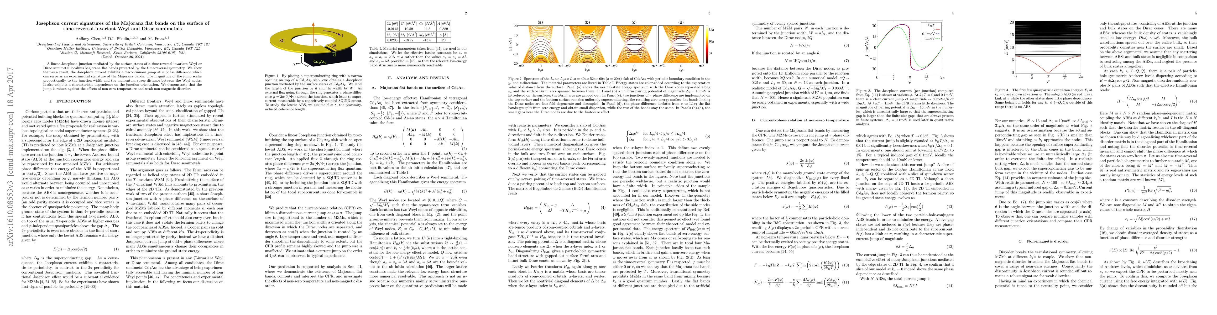 This paper investigates the Josephson current in a linear Josephson junction mediated by Majorana flat bands on the surface of Weyl or Dirac semimetals, revealing a discontinuous jump at $\pi$ phase difference as a signature of these bands. The magnitude of the jump scales with junction width and the distance between Weyl nodes, and remains robust against temperature and weak disorder.