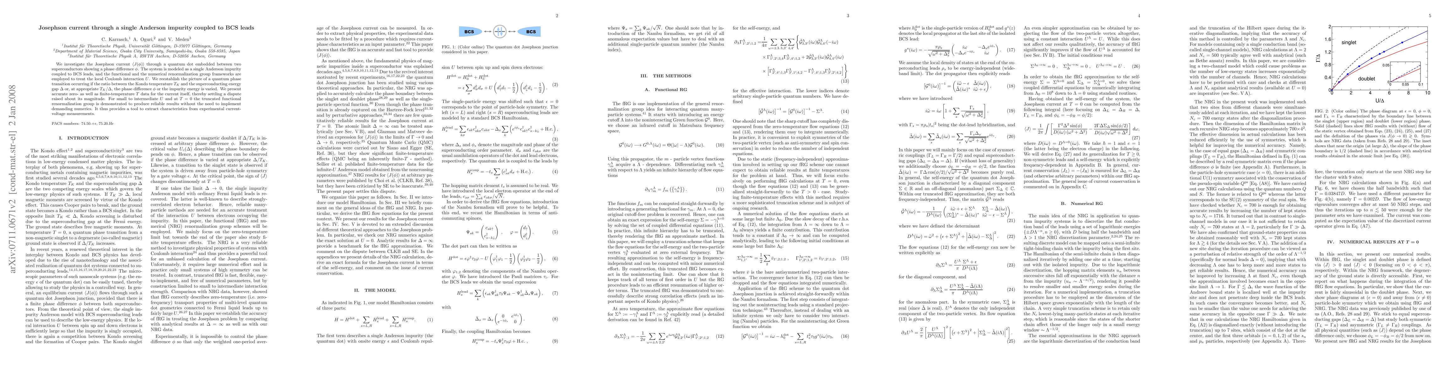 This paper investigates the Josephson current through a quantum dot with a single Anderson impurity between two superconductors, employing renormalization group methods to analyze the interplay of local Coulomb interaction and superconductivity. It resolves a debate on the current's magnitude and provides reliable zero-temperature results for practical experimental applications.