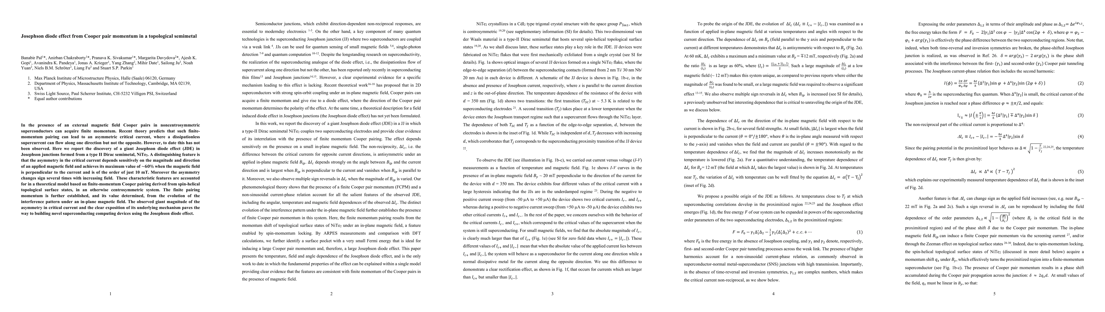 Researchers discovered a giant Josephson diode effect in Josephson junctions made from the type II Dirac semimetal NiTe2, showing a significant asymmetry in critical current dependent on magnetic field direction and magnitude. This effect is explained by finite-momentum Cooper pairing in noncentrosymmetric superconductors, paving the way for new superconducting technologies.