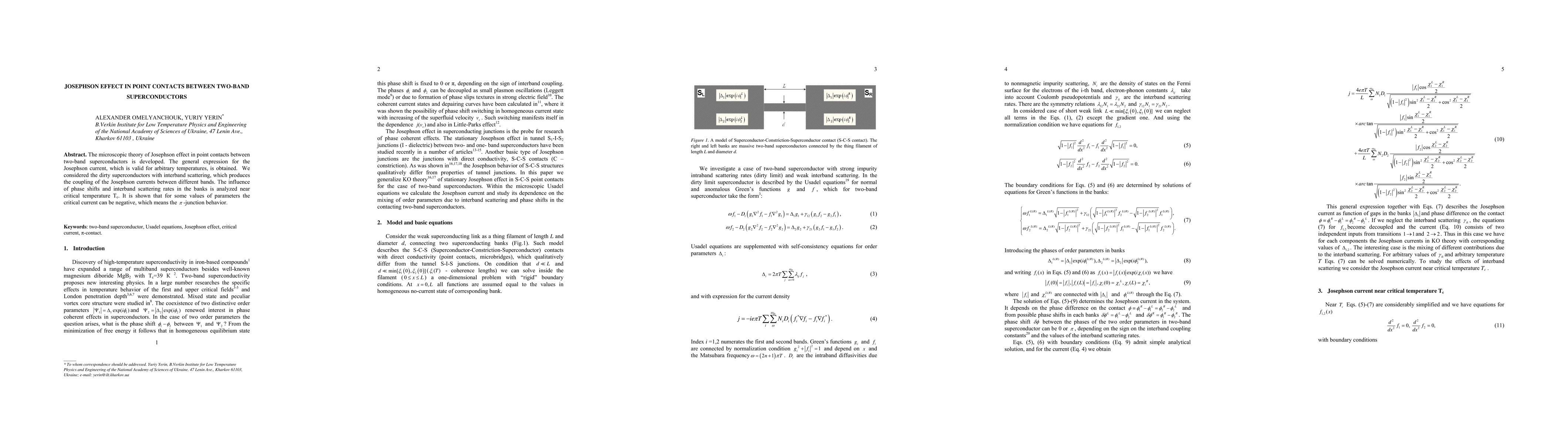 This paper develops a microscopic theory for the Josephson effect in point contacts between two-band superconductors, deriving a general expression for the Josephson current valid at any temperature. It examines the influence of phase shifts and interband scattering, revealing that under certain conditions, the critical current can become negative, indicating pi-junction behavior.