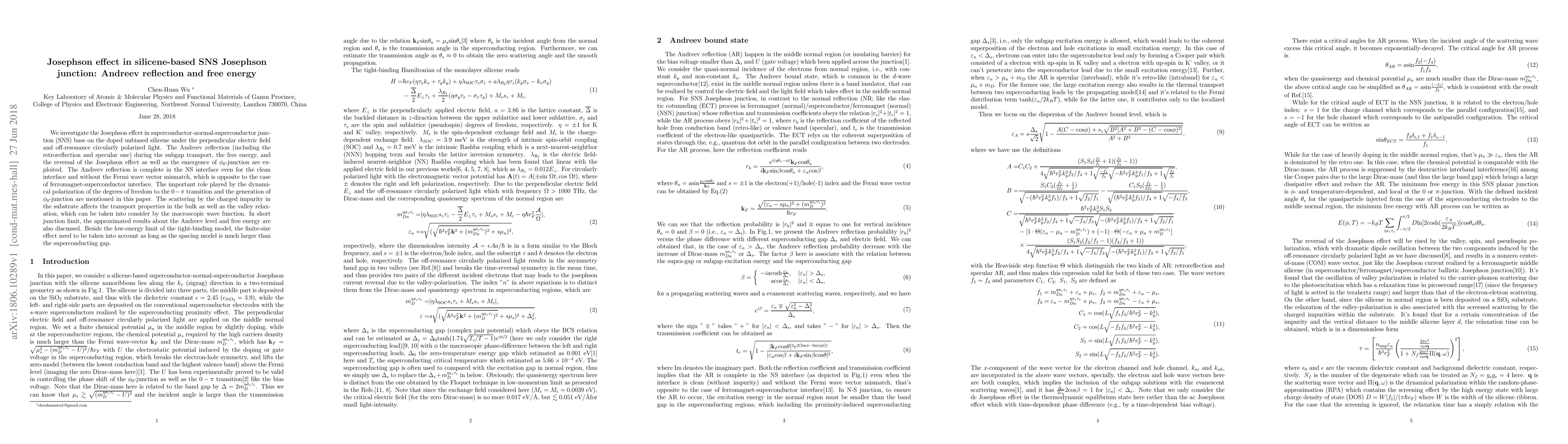 We investigate the Josephson effcet in superconductor-normal-superconductor junction (SNS) base on the doped unbiased silicene under the perpendicular electric field and off-resonance circularly polarized light. The Andreev reflection (including the retroreflection and specular one) during the subgap transport, the free energy, and the reversal of the Josephson effect as well as the emergence of $\phi_{0}$-junction are exploited. The Andreev reflection is complete in the NS interface even for the clean interface and without the Fermi wave vector mismatch, which is opposite to the case of ferromagnet-superconductor interface. The important role played by the dynamical polarization of the degrees of freedom to the $0-\pi$ transition and the generation of $\phi_{0}$-junction are mentioned in this paper. The scattering by the charged impurity in the substrate affects the transport properties in the bulk as well as the valley relaxation, which can be taken into consider by the macroscopic wave function. In short junction limit, the approximated results about the Andreev level and free energy are also discussed. Beside the low-energy limit of the tight-binding model, the finite-size effect need to be taken into account as long as the spacing model is much larger than the superconducting gap.