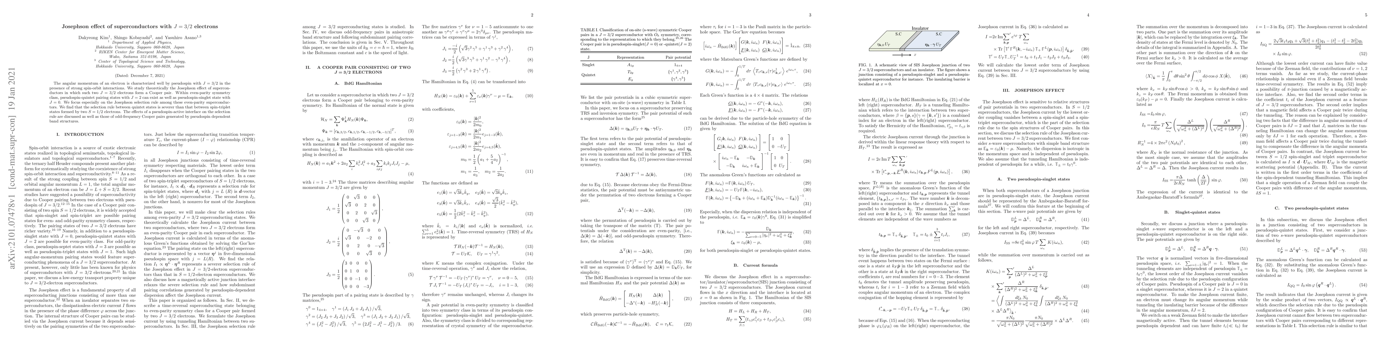 This paper theoretically investigates the Josephson effect in superconductors composed of $J=3/2$ electrons, focusing on the selection rules among different pairing states. It finds that the selection rule for pseudospin-quintet pairings is stricter than for spin-triplet pairings, and examines the influence of pseudospin-active interfaces and odd-frequency Cooper pairs on these rules.