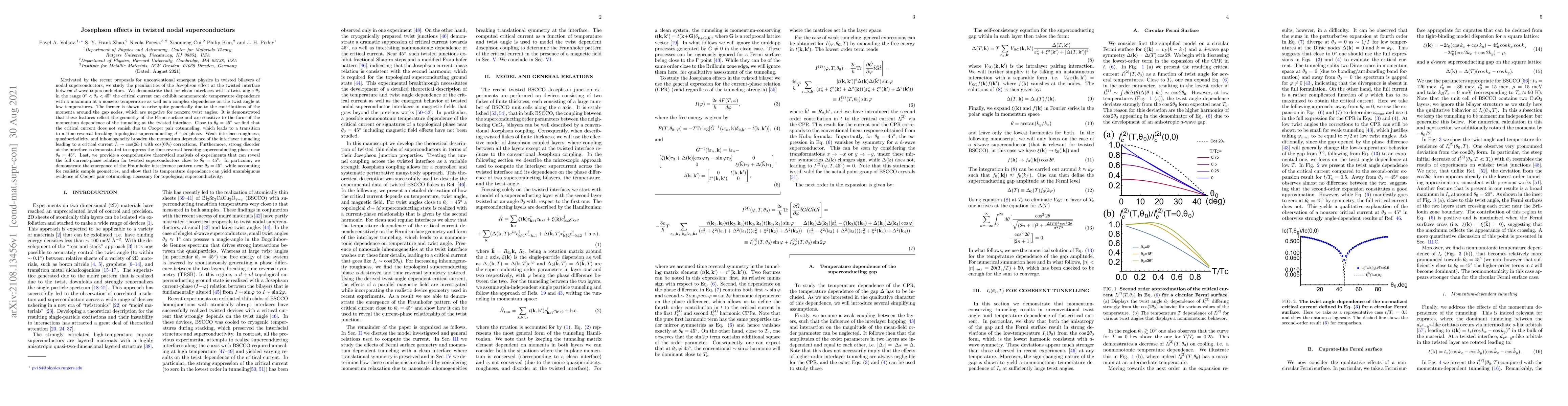 Researchers study the Josephson effect in twisted nodal superconductors, discovering nonmonotonic temperature dependence of critical current with a maximum at a nonzero temperature, and how it reflects the geometry of the Fermi surface.