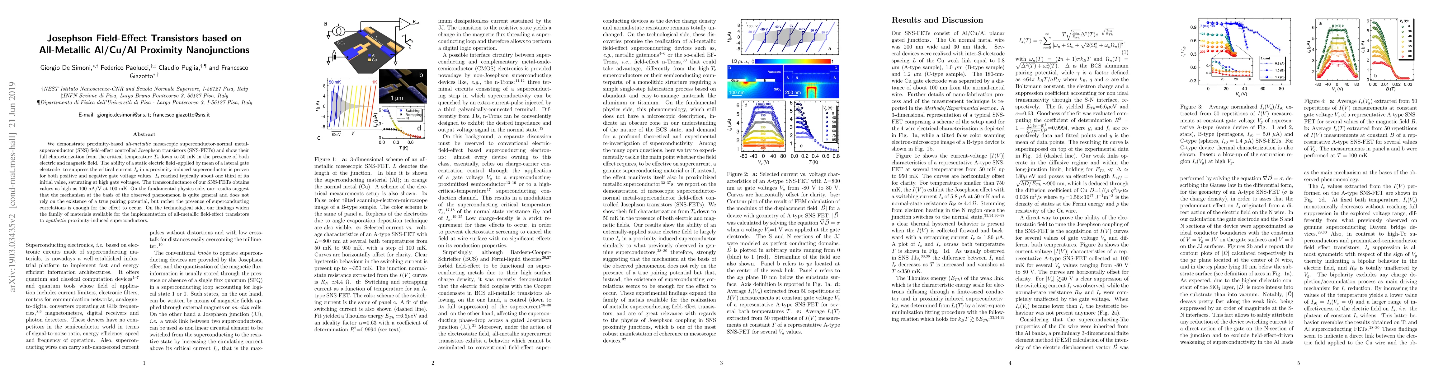 This paper demonstrates the first all-metallic mesoscopic Josephson transistors based on Al/Cu/Al proximity nanojunctions, showing their full characterization down to 50 mK. The study reveals that a static electric field can suppress the critical current, achieving up to one-third suppression, and achieving high transconductance values of 100 nA/V at 100 mK.