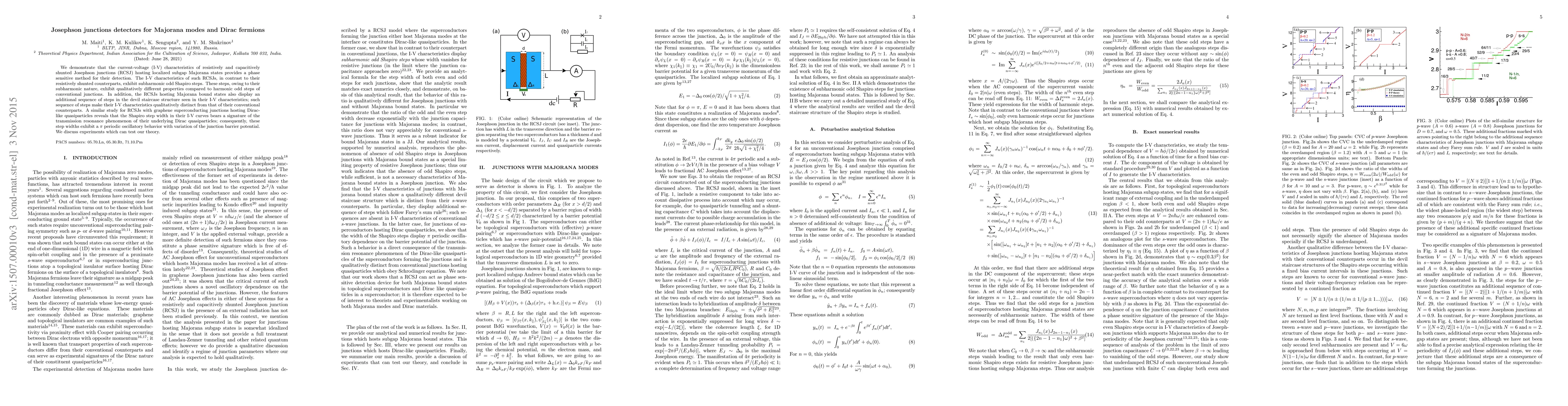 Researchers develop a method to detect Majorana modes and Dirac fermions using Josephson junctions, which exhibit unique subharmonic Shapiro steps in their I-V characteristics.