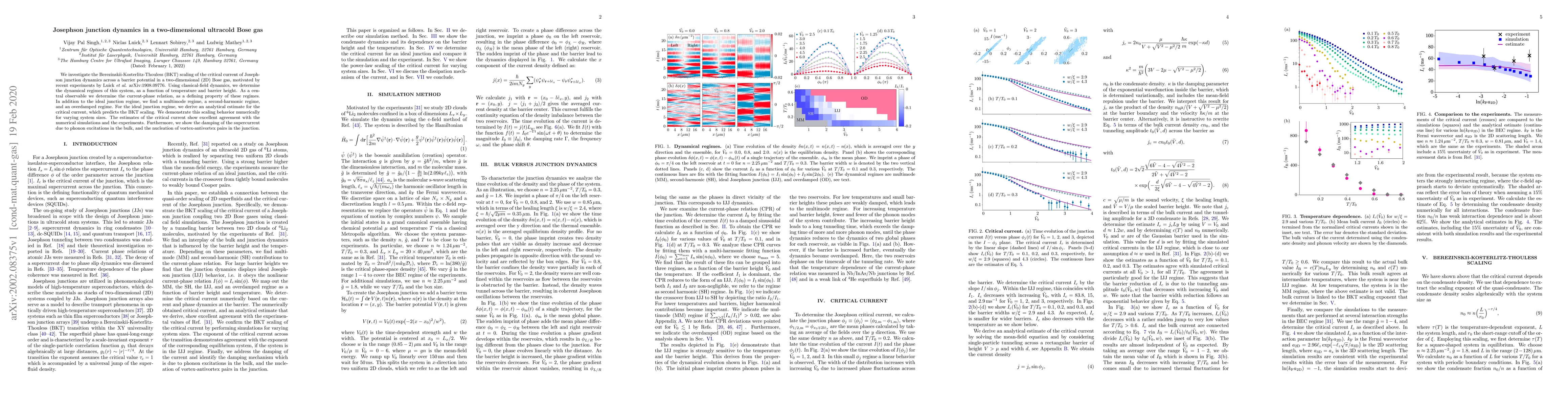 This paper investigates the dynamics of Josephson junctions in a 2D ultracold Bose gas, focusing on the Berezinskii-Kosterlitz-Thouless scaling of the critical current. The study identifies various dynamical regimes and analytically estimates the critical current, showing excellent agreement with numerical simulations and recent experimental results.