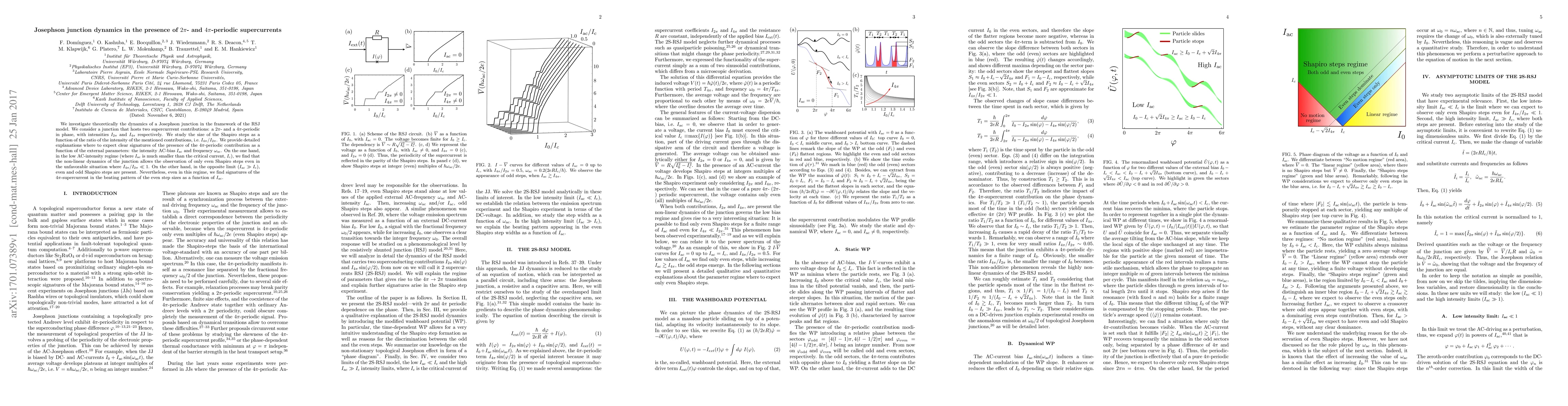This paper theoretically explores the dynamics of a Josephson junction with $2\pi$- and $4\pi$-periodic supercurrents using the RSJ model. It reveals that even Shapiro steps dominate in low AC-intensity regimes, while both even and odd steps appear with $4\pi$-periodic signatures in high AC-intensity regimes, particularly in the beating pattern of even steps.