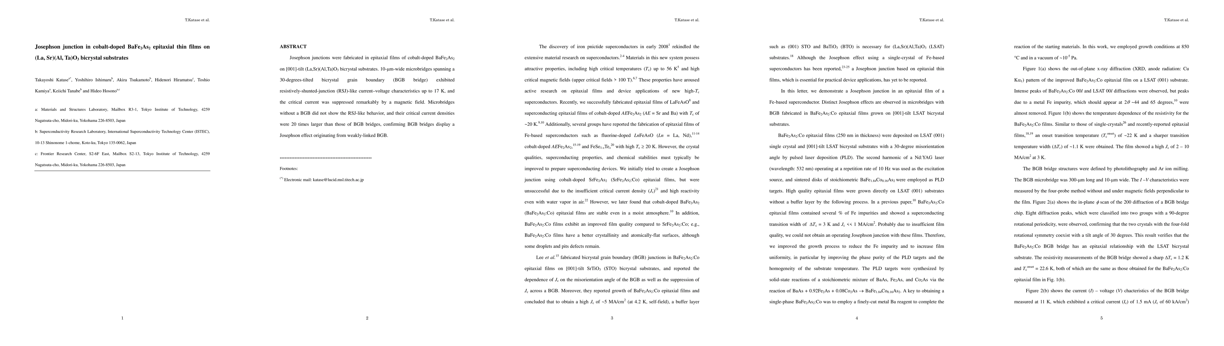 This paper reports on the fabrication of Josephson junctions in cobalt-doped BaFe2As2 thin films on bicrystal substrates, showing RSJ-like current-voltage characteristics up to 17 K, with significant suppression of critical current by magnetic fields. Grain boundary bridges exhibit a pronounced Josephson effect, while standard microbridges without grain boundaries display higher critical current densities.
