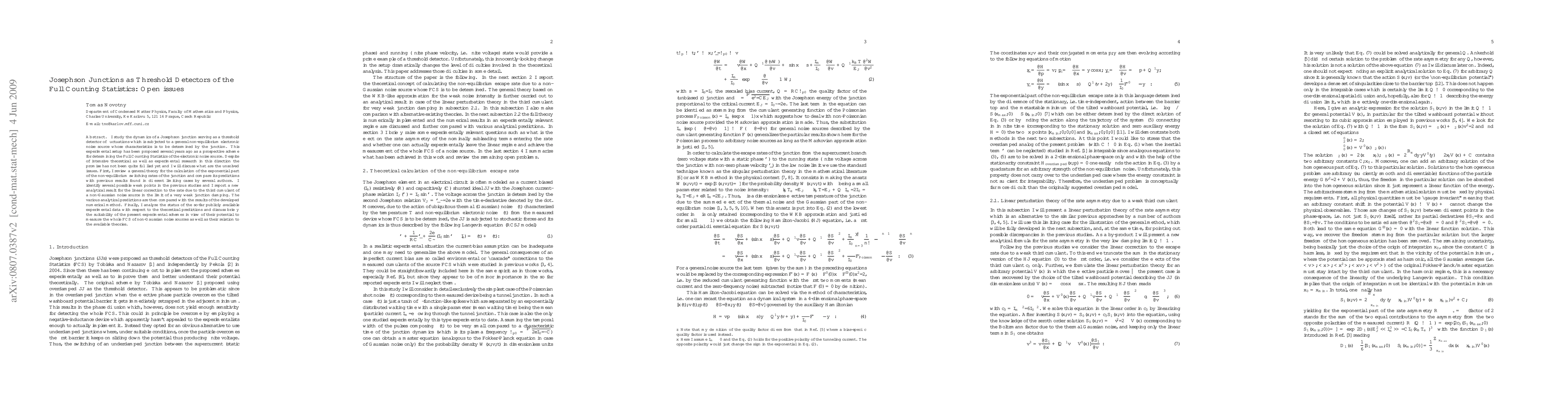 This paper investigates the dynamics of Josephson junctions as threshold detectors for electronic noise, aiming to determine the Full Counting Statistics (FCS) of the noise source. Despite theoretical and experimental efforts, the full potential of this setup has not been realized, and the paper identifies unresolved issues, develops a new analytical result for the linear correction to the rate due to non-Gaussian noise, and compares theoretical predictions with numerical methods and experimental data.