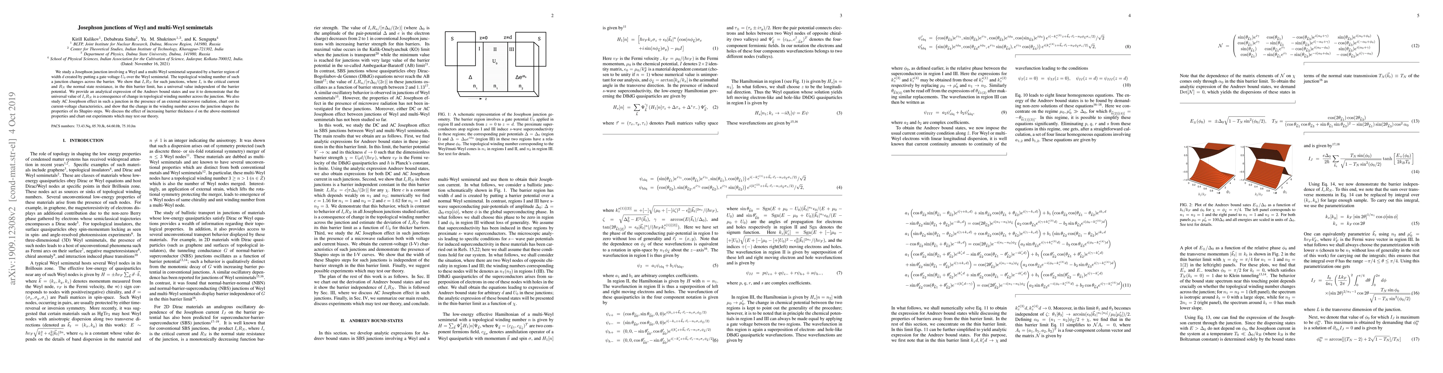 Researchers studied Josephson junctions with Weyl and multi-Weyl semimetals, finding a universal value for critical current resistance independent of barrier potential.