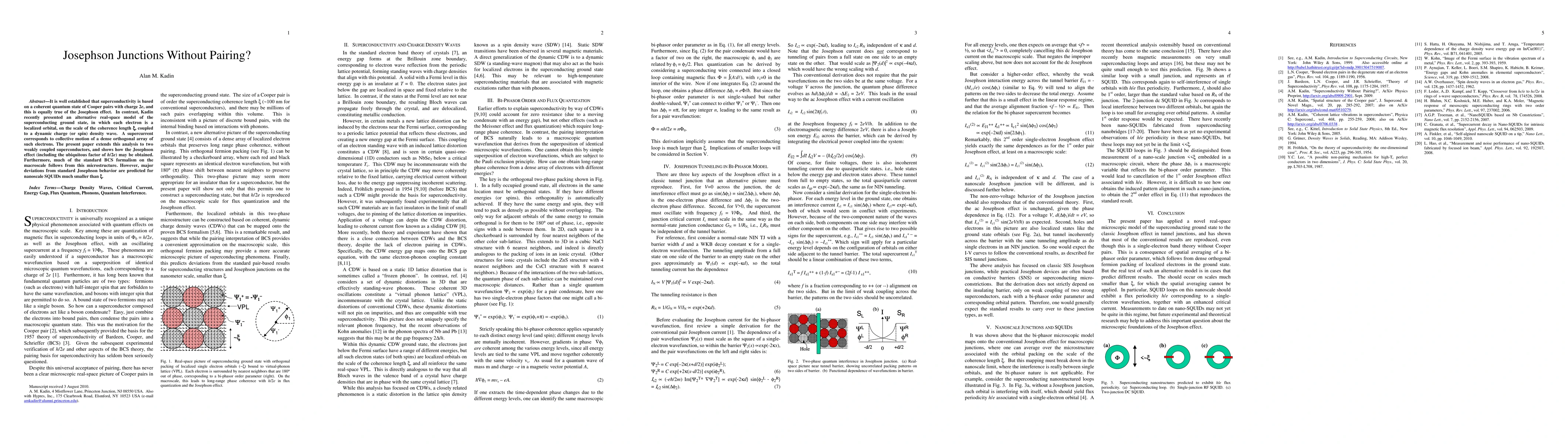 Researchers explore an alternative model of superconductivity that doesn't rely on Cooper pairs, finding that it can explain the Josephson effect in two weakly coupled superconductors, but predicts deviations at nanoscale SQUIDs.