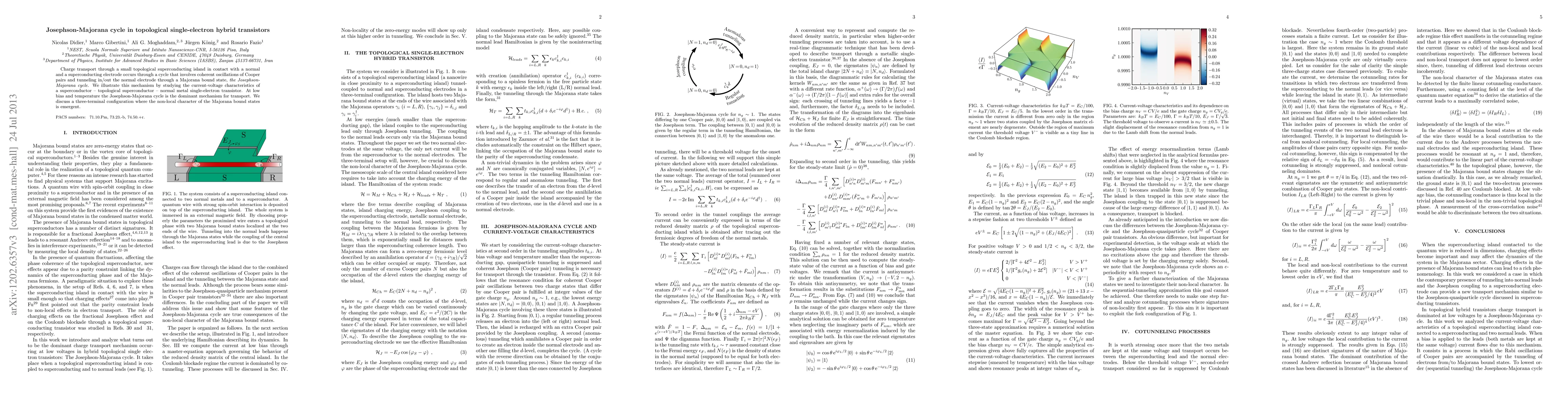 This paper investigates the Josephson-Majorana cycle in a topological single-electron transistor, where charge transport involves coherent Cooper pair oscillations and tunneling via Majorana bound states. At low bias and temperature, this cycle dominates the current-voltage characteristics, and the study also explores a three-terminal setup highlighting the non-local nature of Majorana states.