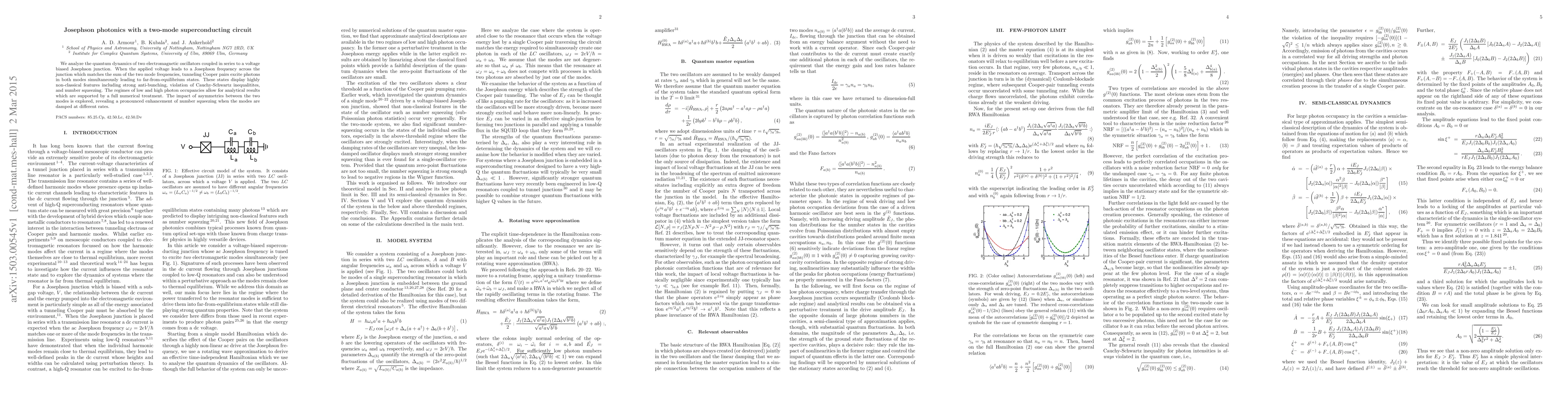 The paper examines a system of two electromagnetic oscillators coupled to a Josephson junction, revealing unique far-from-equilibrium states with non-classical features like anti-bunching and squeezing. The study explores analytical results and numerical treatments, also investigating the impact of mode asymmetries on squeezing enhancement.