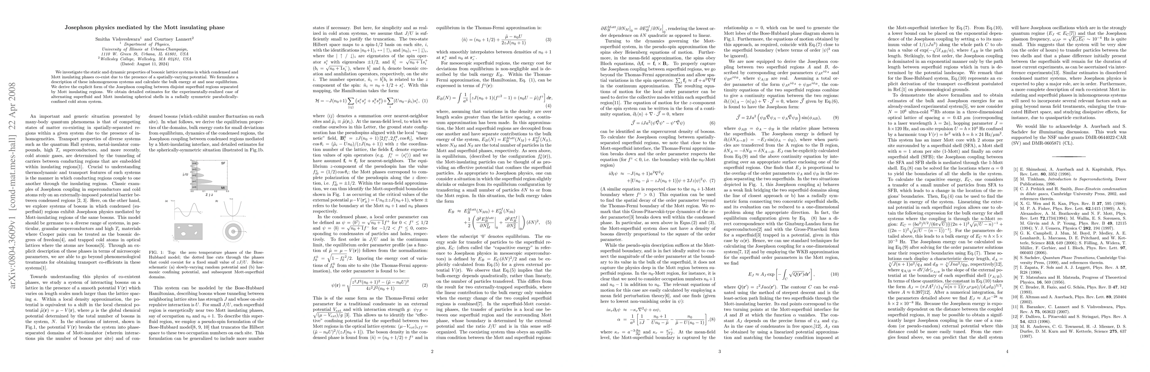 This paper explores the static and dynamic properties of bosonic lattice systems where superfluid and Mott insulating phases coexist due to a spatially-varying potential. The study derives the Josephson coupling between superfluid regions separated by Mott insulators and provides detailed estimates for a radially symmetric cold atom system with alternating superfluid and Mott insulating spherical shells.