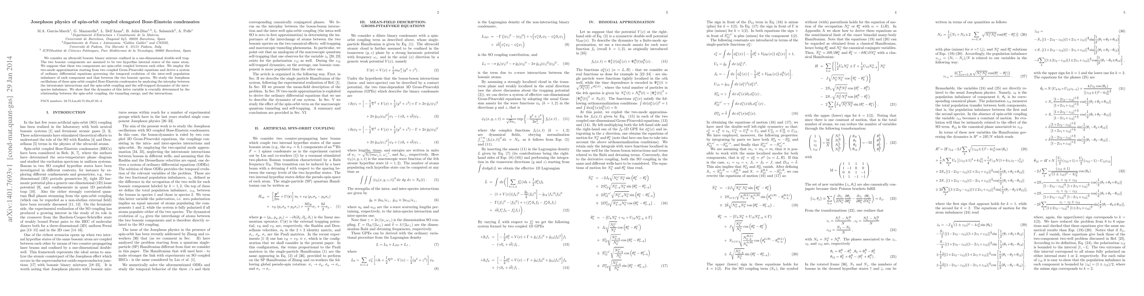 This paper investigates the Josephson physics in spin-orbit coupled Bose-Einstein condensates confined in a one-dimensional double-well trap, deriving a system of ordinary differential equations to model the temporal evolution of inter-well population imbalances. The study reveals how interatomic interactions and spin-orbit coupling influence the dynamics of the inter-species imbalance, highlighting the critical role of the relationship between spin-orbit coupling, tunneling energy, and interactions.