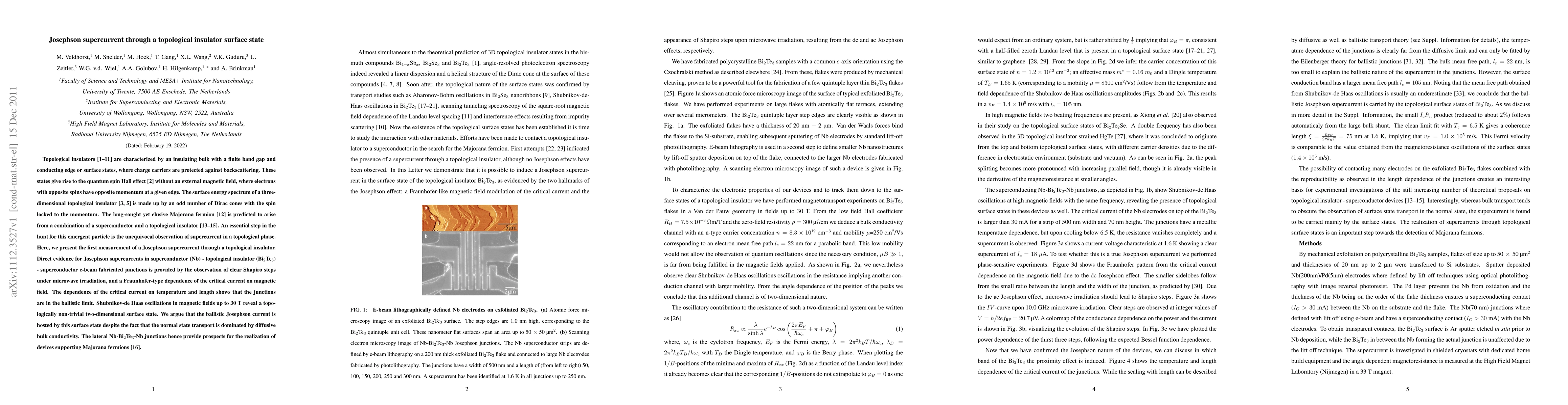 This paper reports the first measurement of a Josephson supercurrent through a topological insulator, demonstrating clear Shapiro steps and a Fraunhofer-type magnetic field dependence. The findings suggest that the ballistic Josephson current is carried by the topological insulator's surface state, indicating potential for Majorana fermion devices.