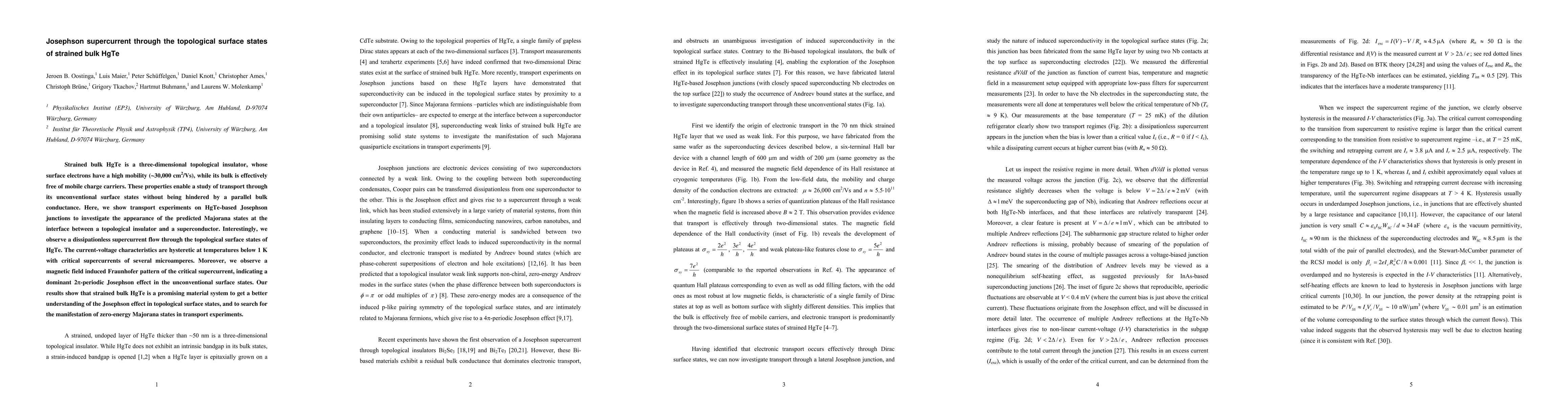This paper investigates Josephson supercurrent through the topological surface states of strained bulk HgTe, demonstrating dissipationless supercurrent flow and a magnetic field-induced Fraunhofer pattern, which suggest a dominant 2π-periodic Josephson effect, thus highlighting HgTe as a promising material for studying Majorana states.