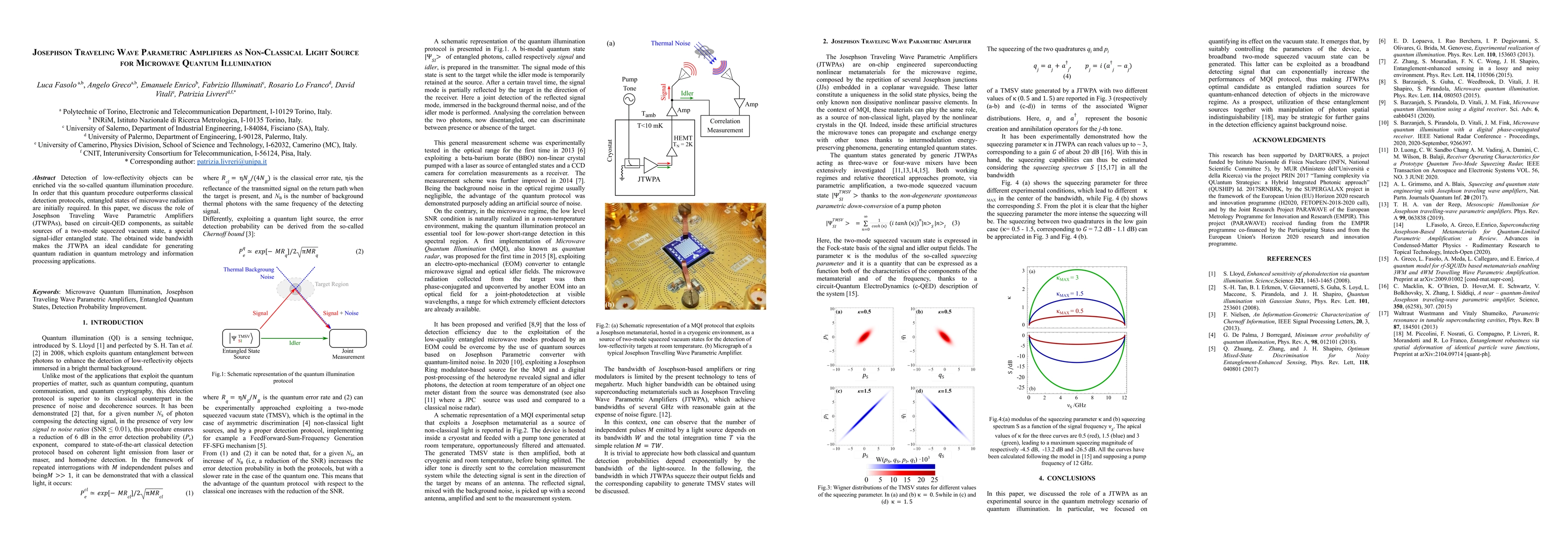 This paper explores the use of Josephson Traveling Wave Parametric Amplifiers (JTWPAs) to generate entangled microwave radiation for quantum illumination, a method that enhances the detection of low-reflectivity objects. JTWPAs, based on circuit-QED components, produce a two-mode squeezed vacuum state, offering a wide bandwidth suitable for quantum metrology and information processing.