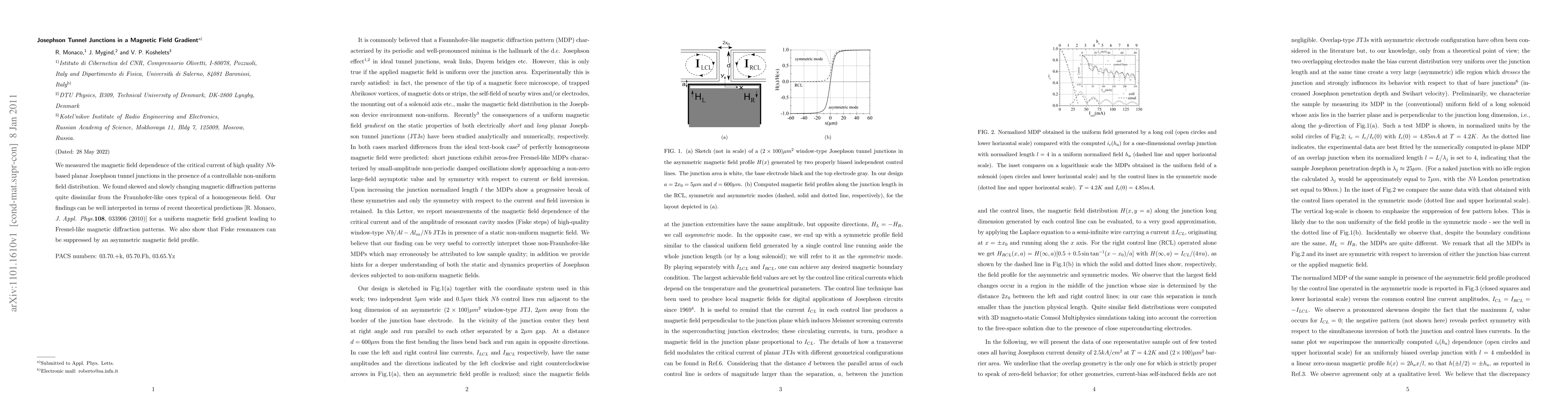 This study investigates the magnetic field dependence of the critical current in Nb-based Josephson tunnel junctions under non-uniform magnetic field gradients, revealing skewed diffraction patterns unlike those in homogeneous fields. Theoretical predictions for Fresnel-like patterns and suppression of Fiske resonances by asymmetric field profiles are confirmed.