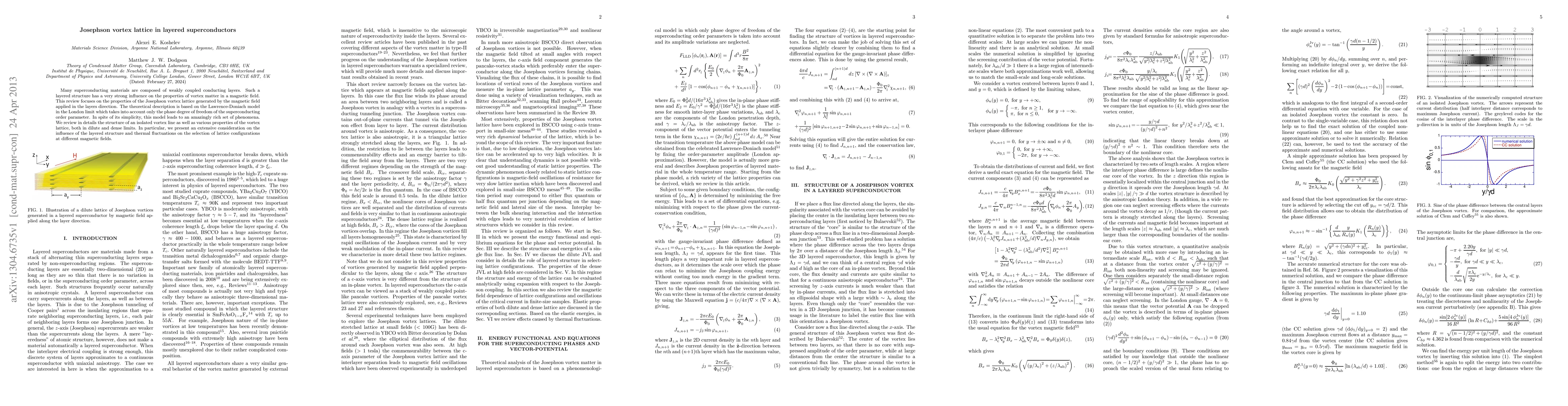 This paper reviews the properties of Josephson vortex lattices in layered superconductors, focusing on the influence of magnetic fields applied in the layer direction. It uses the Lawrence-Doniach model to explore vortex structures and lattice configurations, highlighting the effects of the layered structure and thermal fluctuations on vortex behavior.