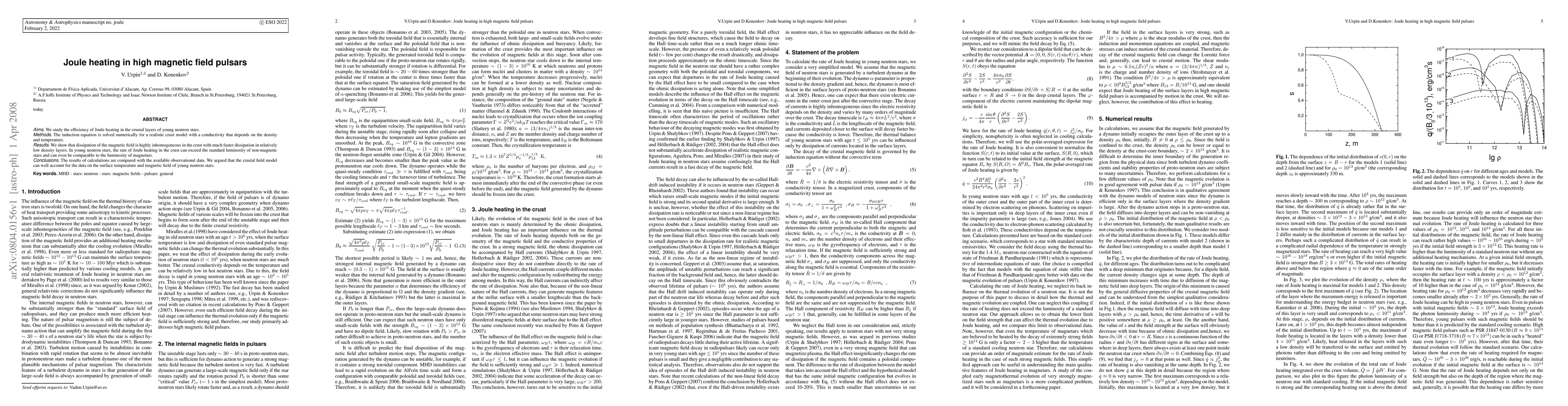 This paper investigates Joule heating efficiency in the crustal layers of young neutron stars under high magnetic fields, revealing significant inhomogeneity in magnetic field dissipation. The study finds that Joule heating can surpass typical luminosity in non-magnetic stars and may even match magnetar luminosities, aligning well with observational data on young neutron stars' surface temperatures and magnetic fields.