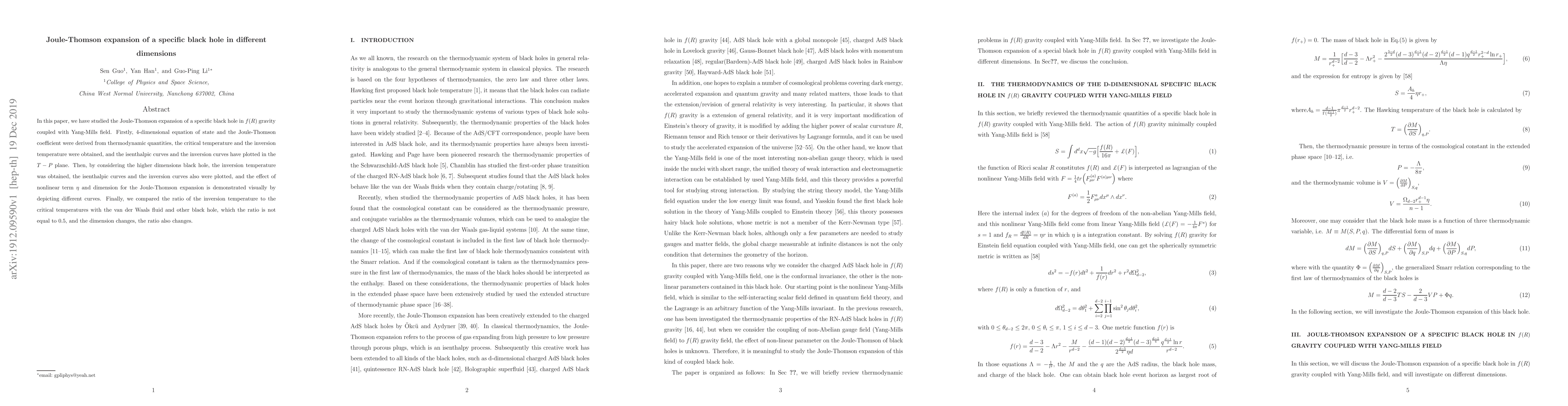 This paper investigates the Joule-Thomson expansion of a specific black hole in f(R) gravity with a Yang-Mills field, deriving equations of state and thermodynamic coefficients in both 4D and higher dimensions, and comparing the inversion temperature ratios to those of van der Waals fluids. The results show that the ratio varies with dimension, unlike the 0.5 ratio typical of van der Waals fluids.