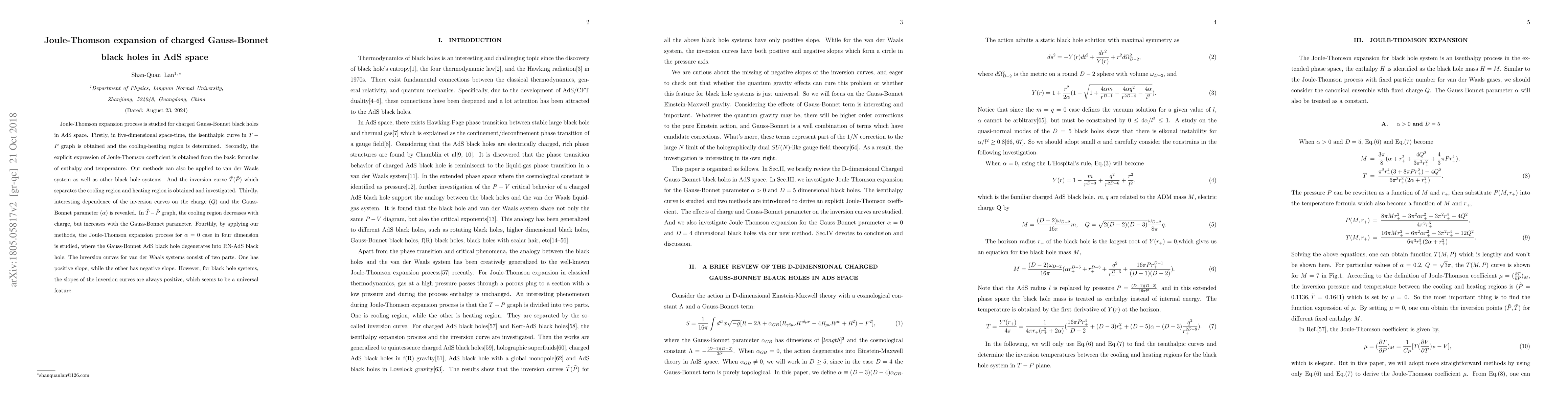 Joule-Thomson expansion process is studied for charged Gauss-Bonnet black holes in AdS space. Firstly, in five-dimensional space-time, the isenthalpic curve in $T-P$ graph is obtained and the cooling-heating region is determined. Secondly, the explicit expression of Joule-Thomson coefficient is obtained from the basic formulas of enthalpy and temperature. Our methods can also be applied to van der Waals system as well as other black hole systems. And the inversion curve $\tilde{T}(\tilde{P})$ which separates the cooling region and heating region is obtained and investigated. Thirdly, interesting dependence of the inversion curves on the charge $(Q)$ and the Gauss-Bonnet parameter $(\alpha)$ is revealed. In $\tilde{T}-\tilde{P}$ graph, the cooling region decreases with charge, but increases with the Gauss-Bonnet parameter. Fourthly, by applying our methods, the Joule-Thomson expansion process for $\alpha=0$ case in four dimension is studied, where the Gauss-Bonnet AdS black hole degenerates into RN-AdS black hole. The inversion curves for van der Waals systems consist of two parts. One has positive slope, while the other has negative slope. However, for black hole systems, the slopes of the inversion curves are always positive, which seems to be a universal feature.