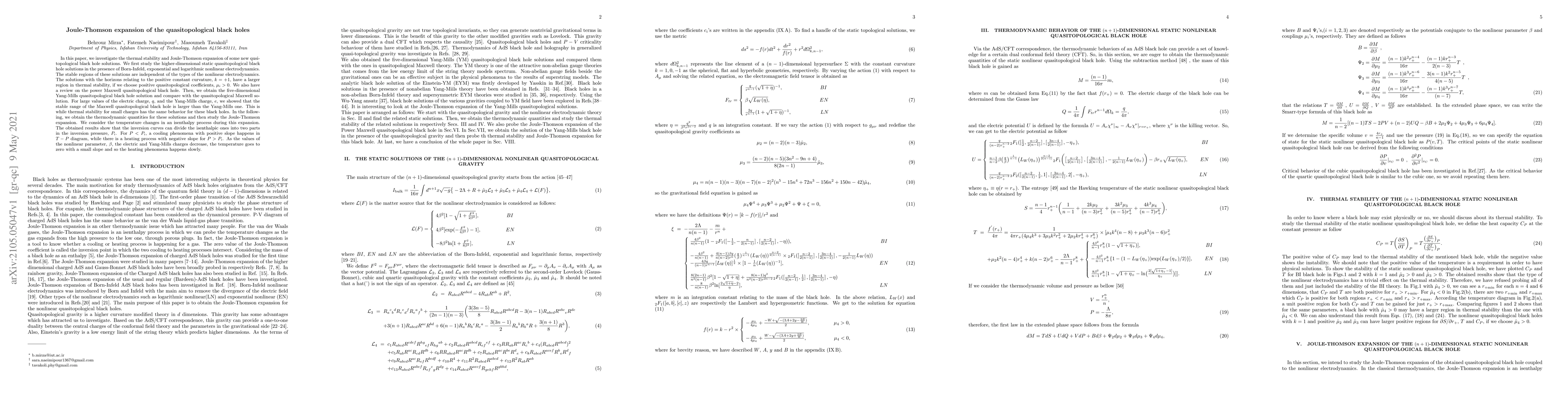 review on the power Maxwell quasitopological black hole. Then, we obtain the