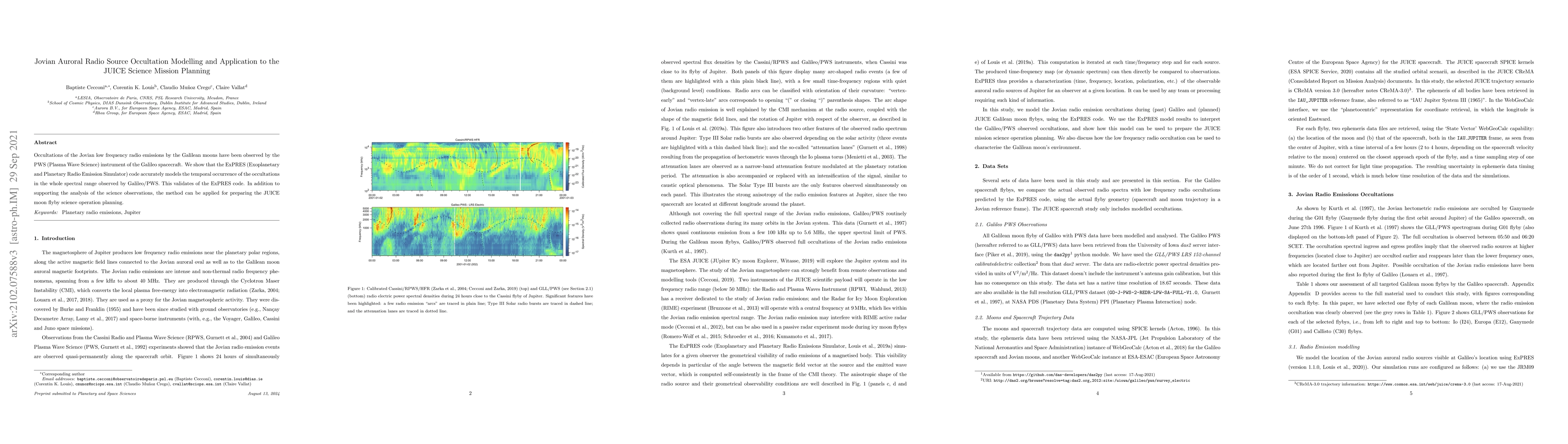The research utilizes the ExPRES code to model Jovian auroral radio source occultations, validating it against Galileo/PWS observations. The method is then applied to support JUICE moon flyby science operation planning.